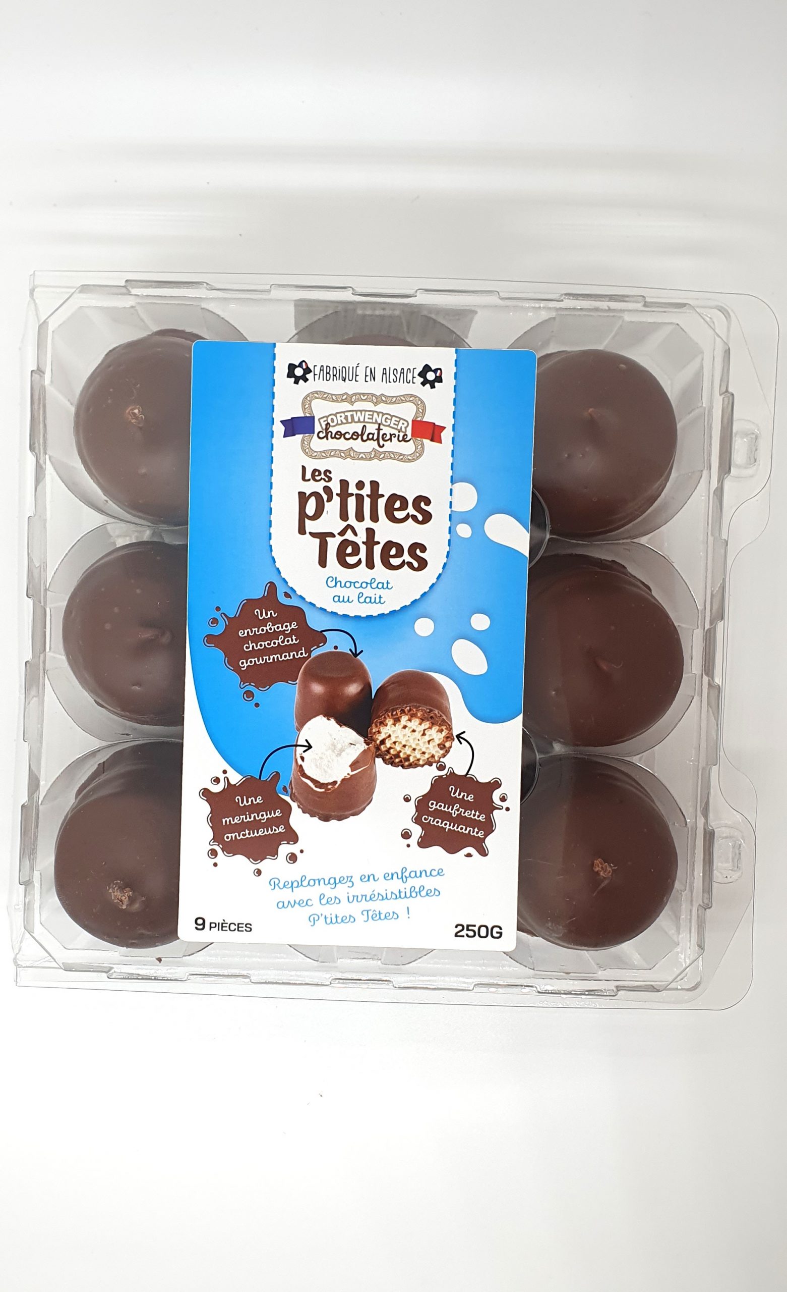 La fabrication remet à l’honneur une douceur associée aux souvenirs d’enfance : une meringue légère posée sur une fine gaufrette croustillante puis enrobée de chocolat.