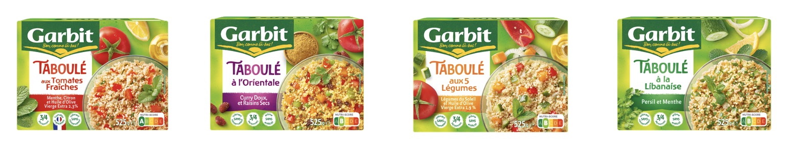 Dans les années 1970, Garbit (COFIGEO) décline ses kits dans une gamme de taboulés avec un étui de semoule et une boite de garniture permettant ainsi la conception de la recette en 30 minutes.