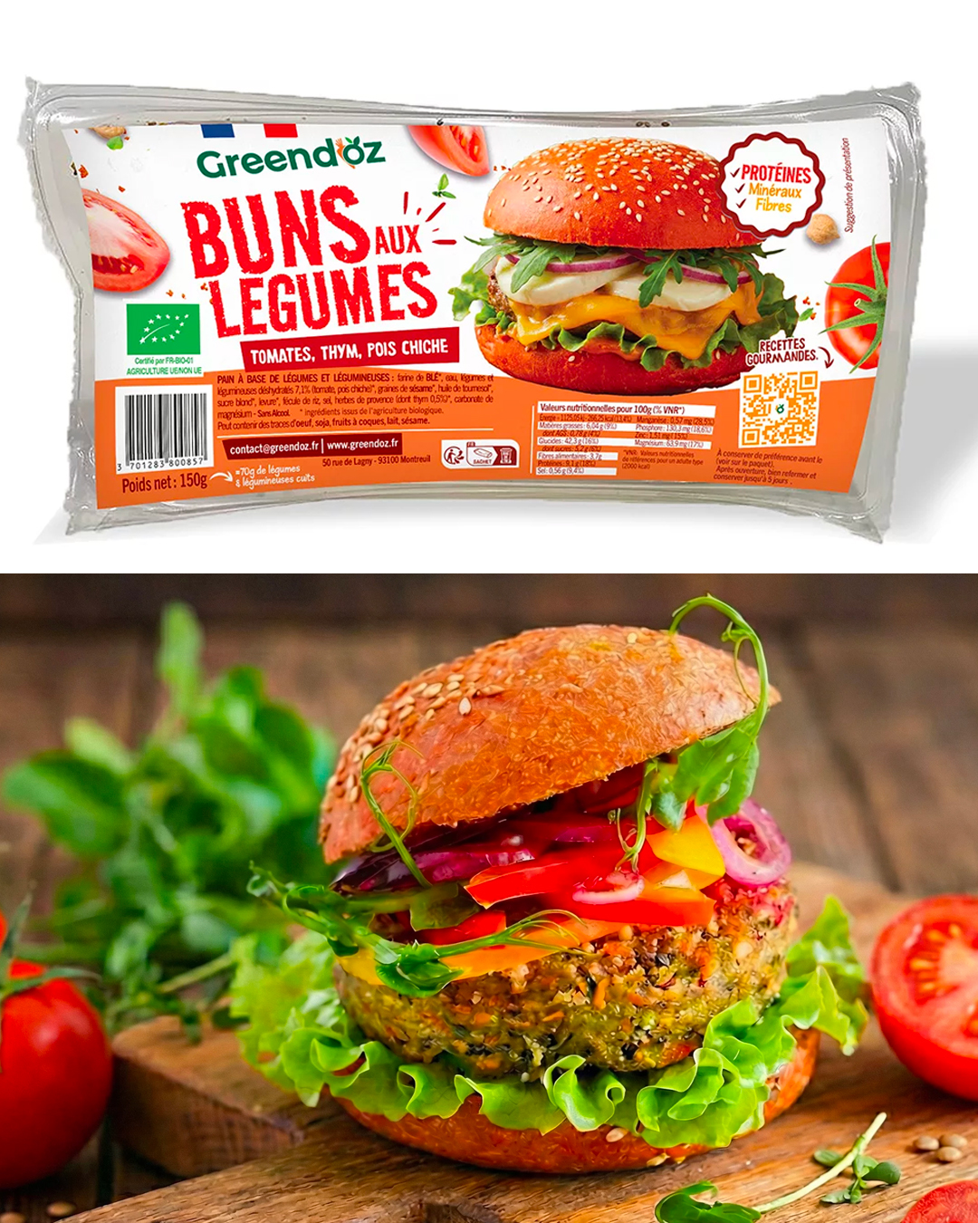 GreendOz revisite le pain burger avec une recette qui fait la part belle aux légumes et aux légumineuses.