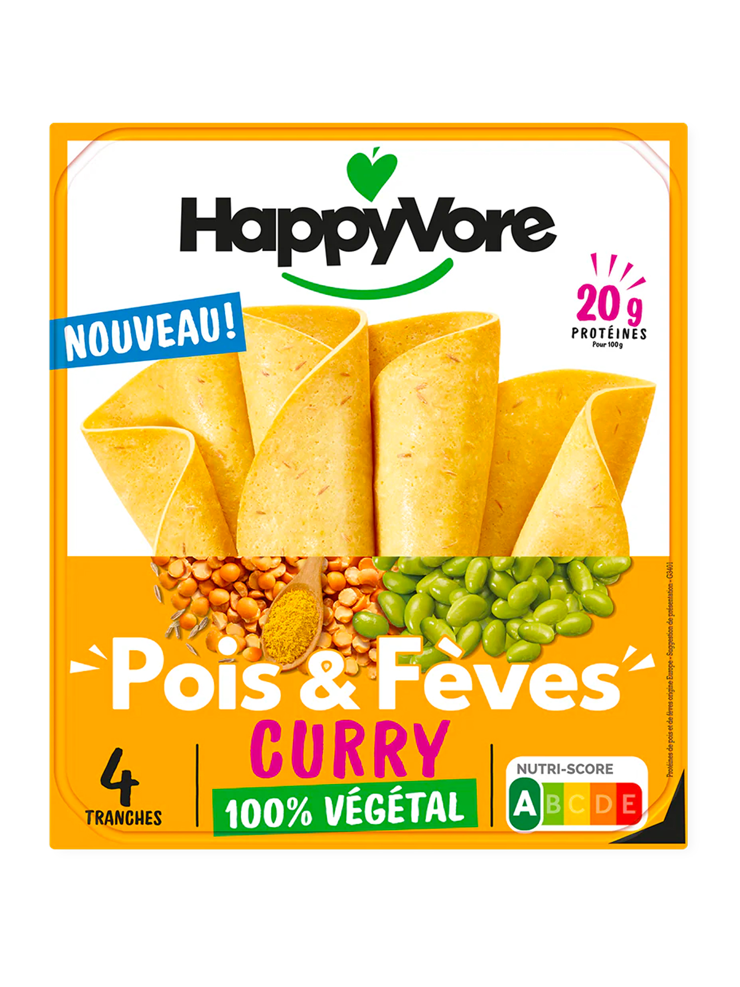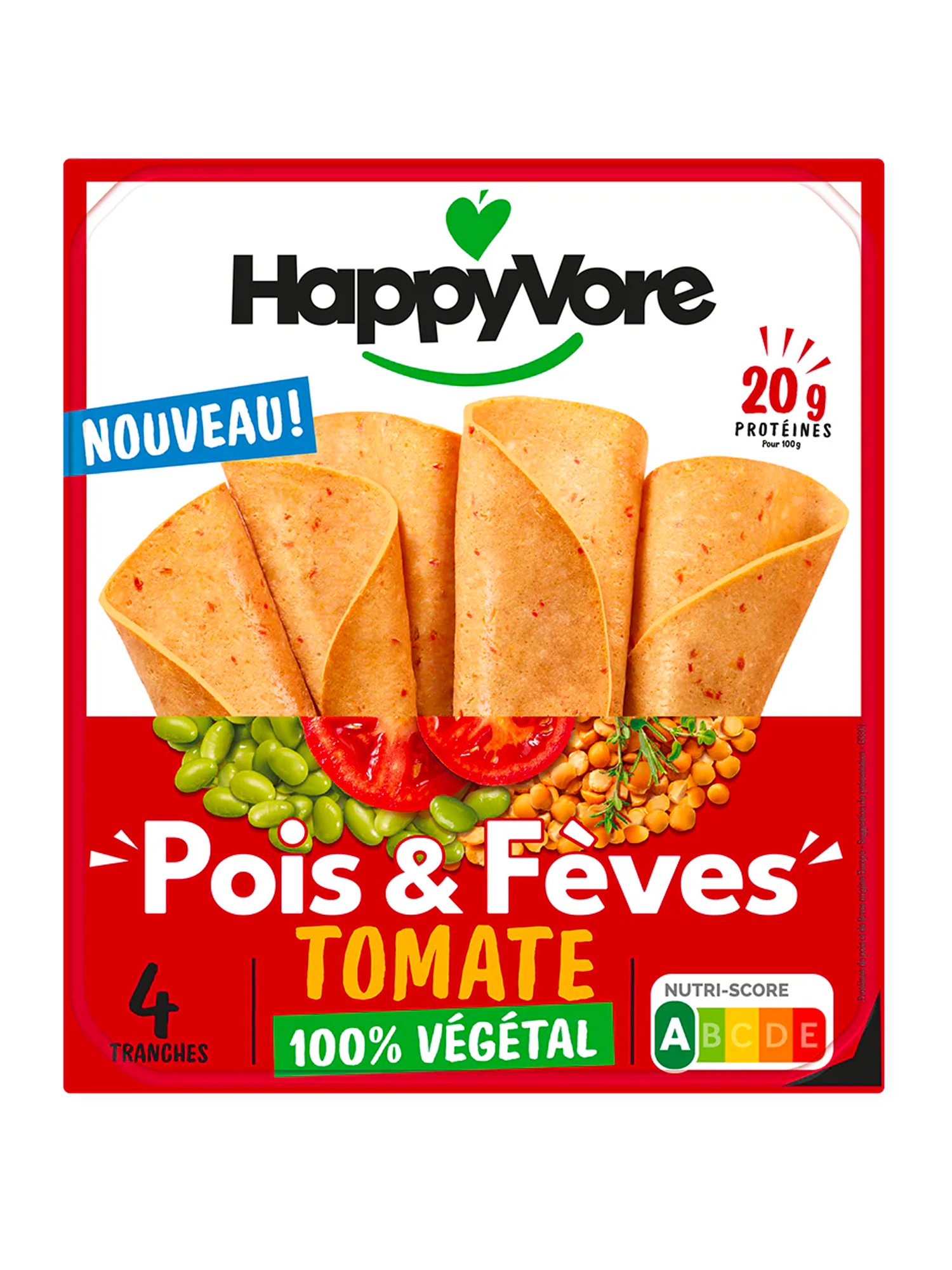 A l’instar des Tranches Végé de Fleury Michon, HappyVore bouscule les habitudes du jambon avec ses nouvelles tranches végétales à base de pois et de fèves.