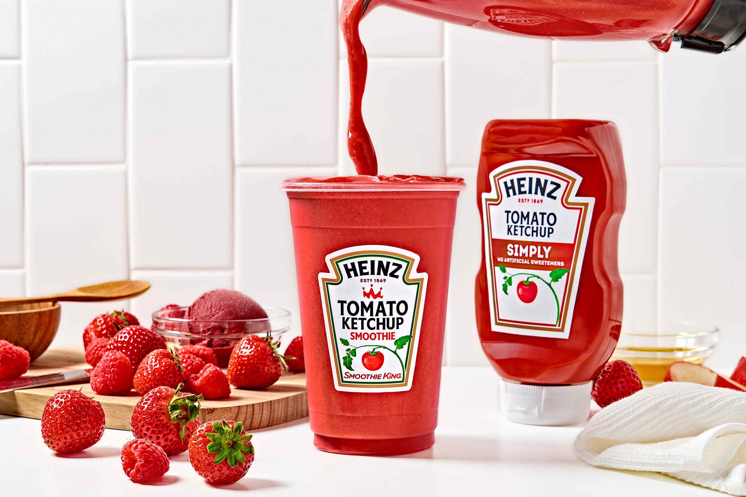 Heinz pousse l’amour de la tomate jusqu’au blender en collaborant avec Smoothie King autour d’un smoothie inattendu : une boisson fruitée à base de ketchup.