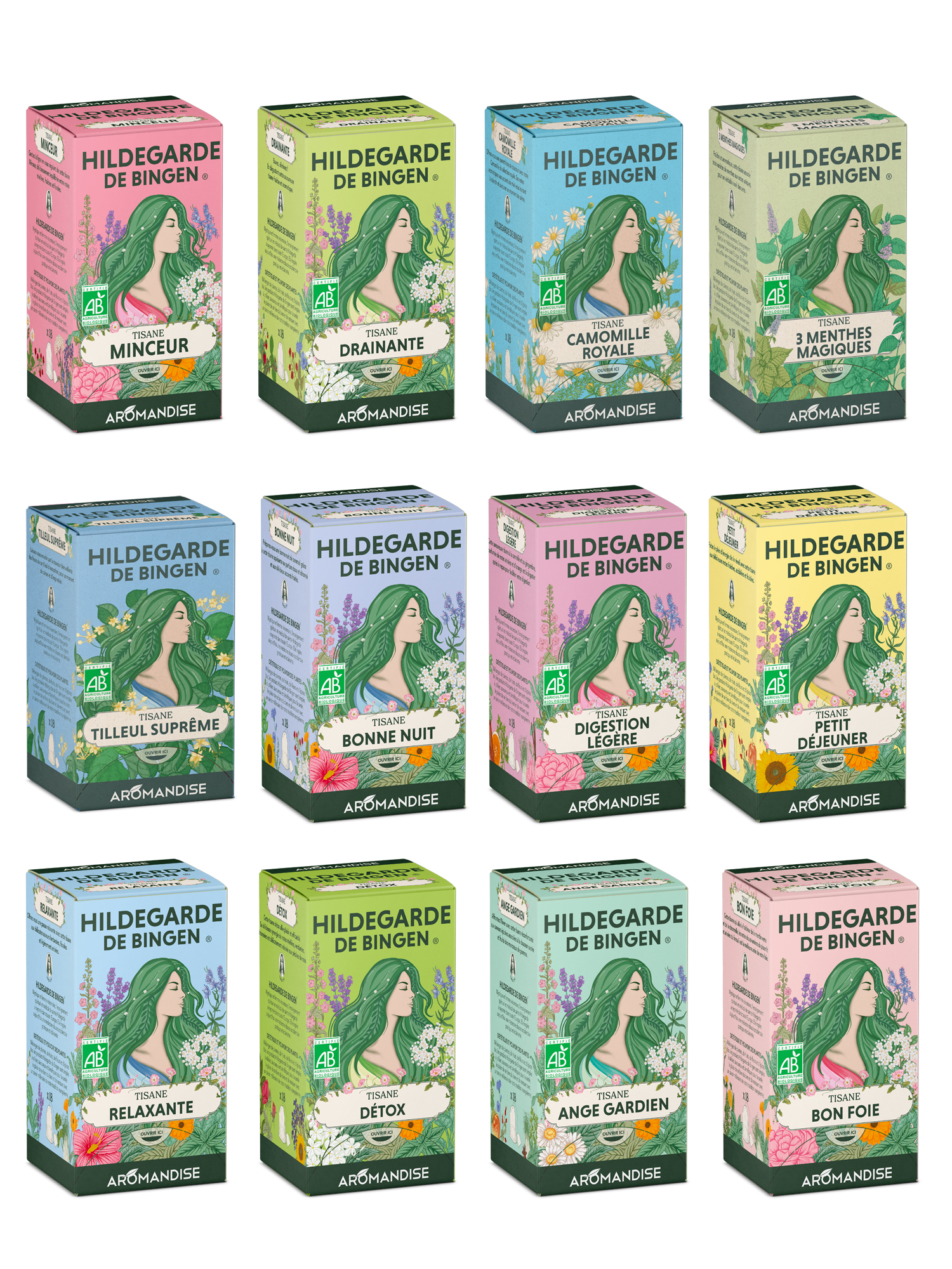 Aromandise revoit l’allure de sa gamme Hildegarde de Bingen, sans toucher à l’essentiel : les recettes restent inchangées, mais l’emballage prend un tournant plus expressif.