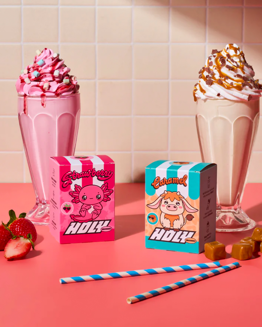 Le principe repose sur des poudres à diluer dans de l’eau ou du lait, à choisir selon l’intensité ou l’usage recherché. Loin des boissons prêtes à boire standardisées, HOLY invite à tester, doser et composer soi-même son breuvage, dans un esprit plus libre et joueur.