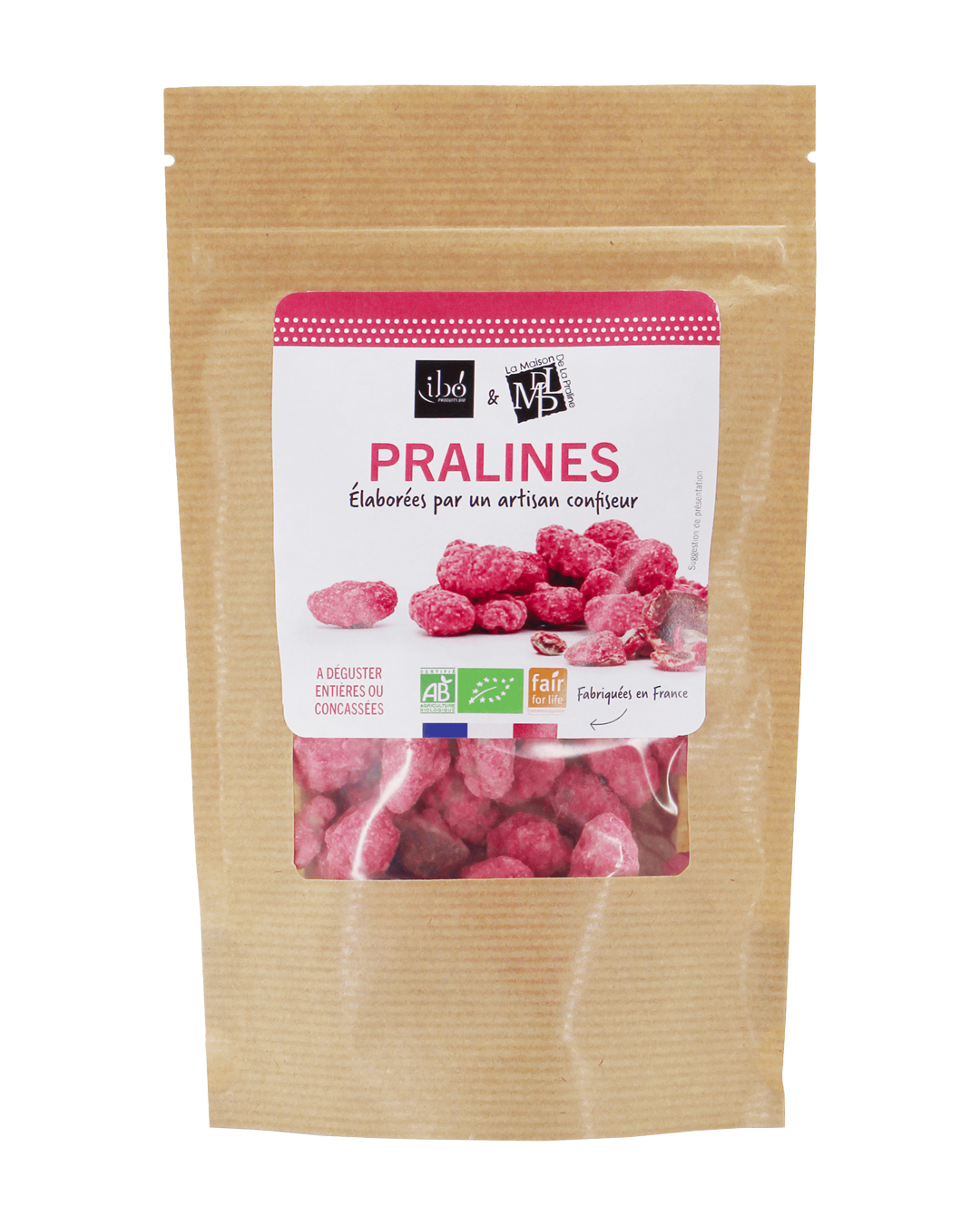 La marque française Ibo ! s’inspire du patrimoine lyonnais en proposant des pralines roses entières élaborées à partir d’amandes bio issues du commerce équitable.