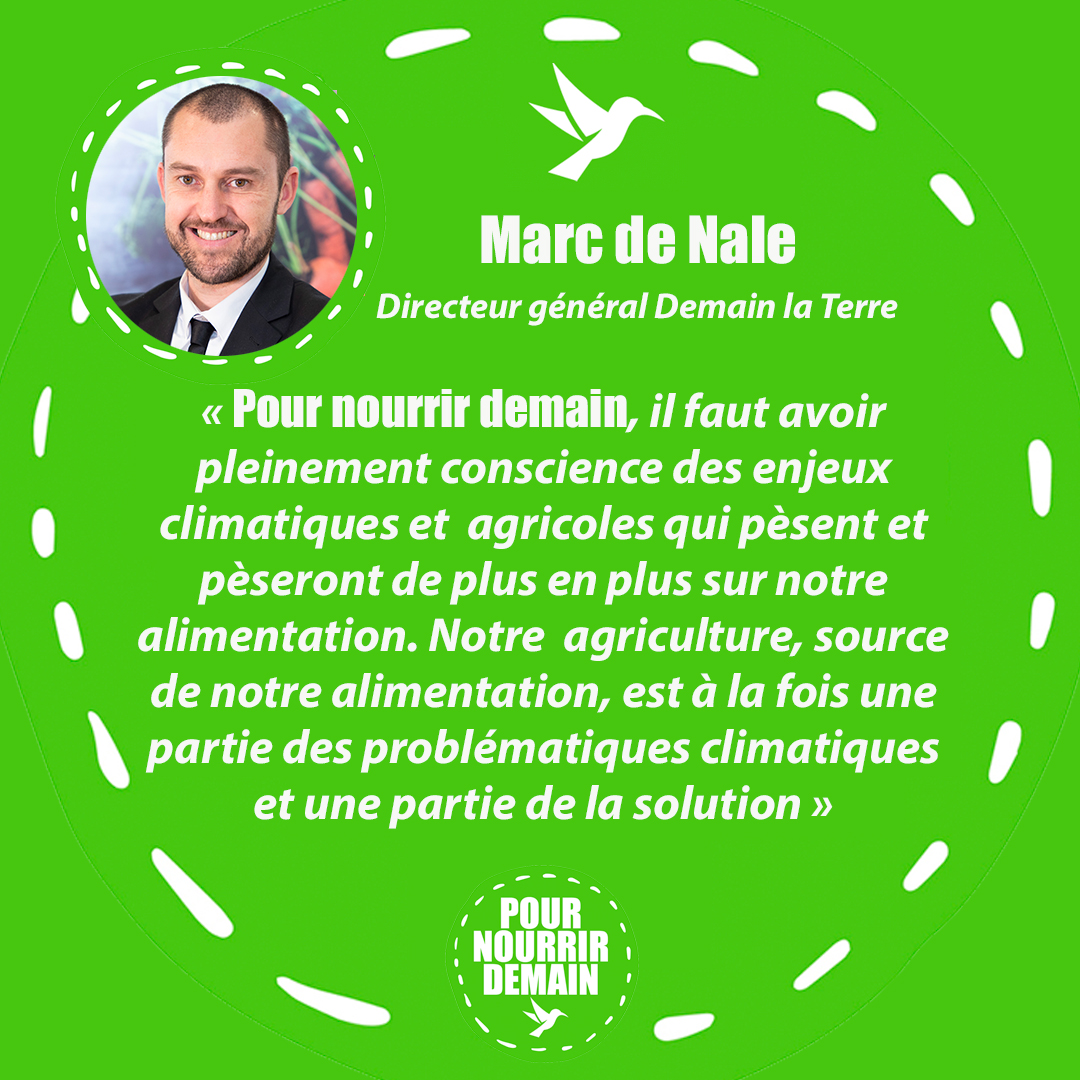 « Pour nourrir demain, il faut avoir pleinement conscience des enjeux climatiques et agricoles qui pèsent et pèseront de plus en plus sur notre alimentation. Notre agriculture, source de notre alimentation, est à la fois une partie des problématiques climatiques et une partie de la solution ; nous devons prendre conscience collectivement de son rôle précieux pour notre futur alimentaire. »