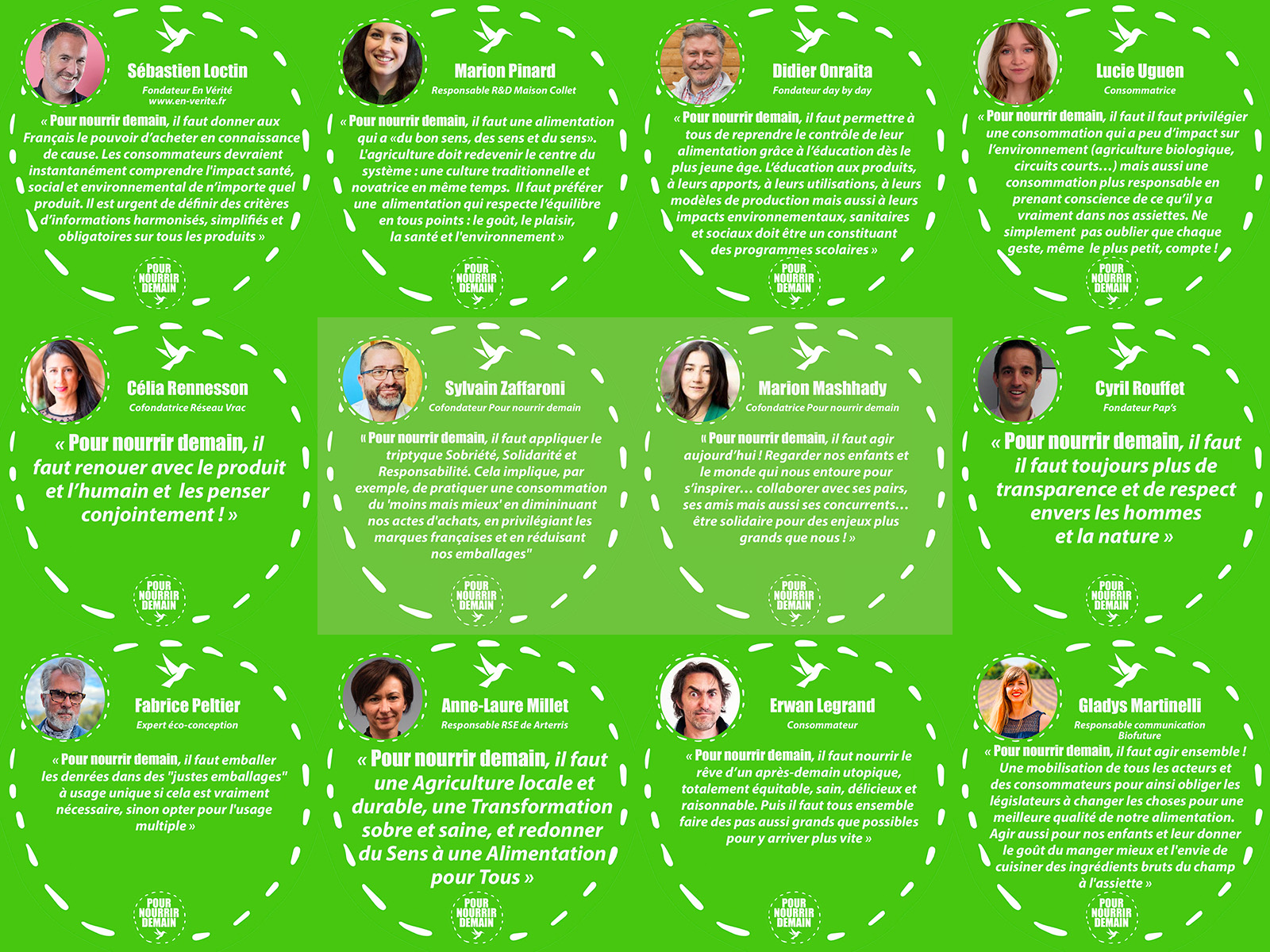 Depuis plusieurs années, nous rencontrons, au quotidien, des femmes et des hommes qui oeuvrent pour une meilleure alimentation au plus grand nombre. Nous avons décidé de leur donner la parole à travers une série de verbatim sur le thème « Pour nourrir demain, il faut… ». Dirigeants de marques alimentaires, collaborateurs et parfois consommateurs, leur point commun est de faire l’alimentation de demain ! Vous souhaitez aussi contribuer en proposant vos actions Pour nourrir demain ? Proposez votre contenu !