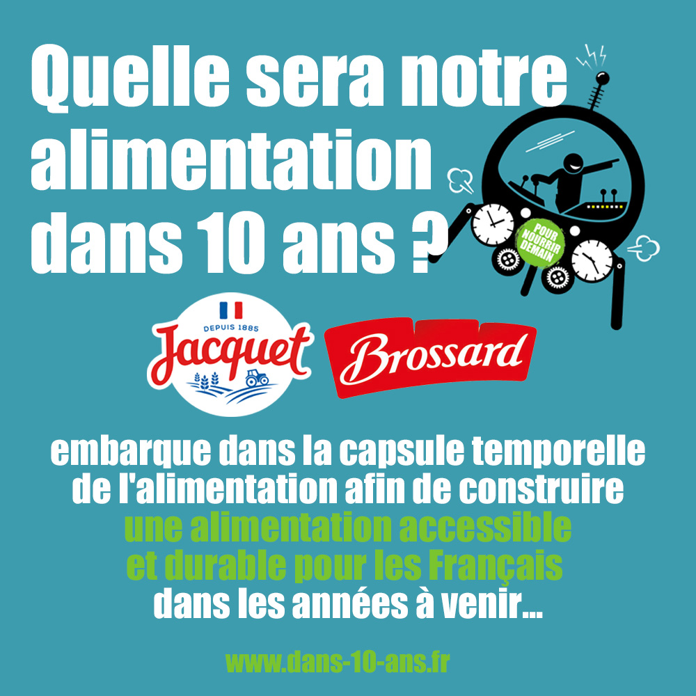 Quelle sera notre alimentation dans 10 ans ? Jacquet Brossard et ses collaborateurs embarquent dans la capsule temporelle de l’alimentation afin de construire une transition alimentaire accessible et durable pour les Français dans les années à venir.