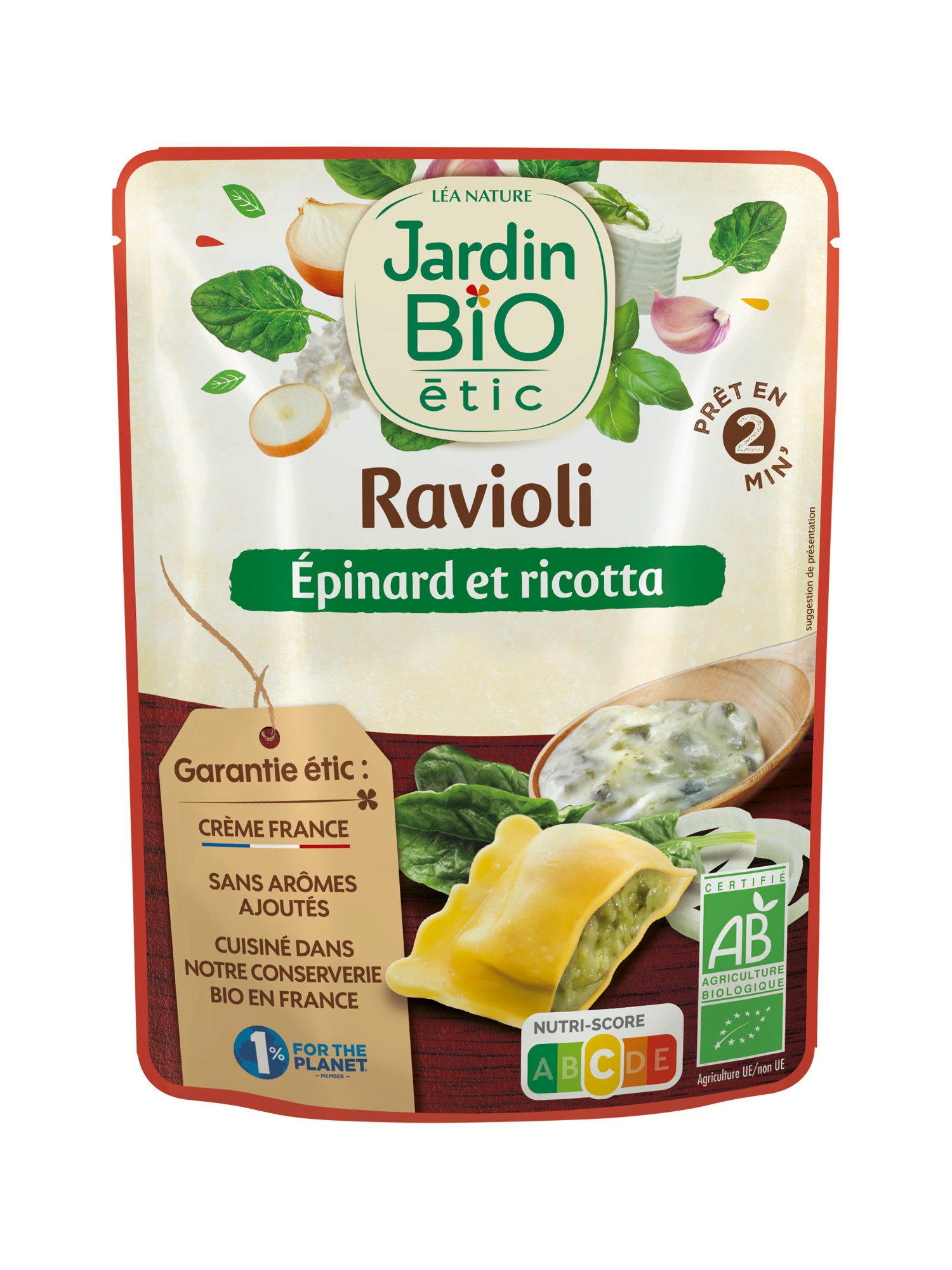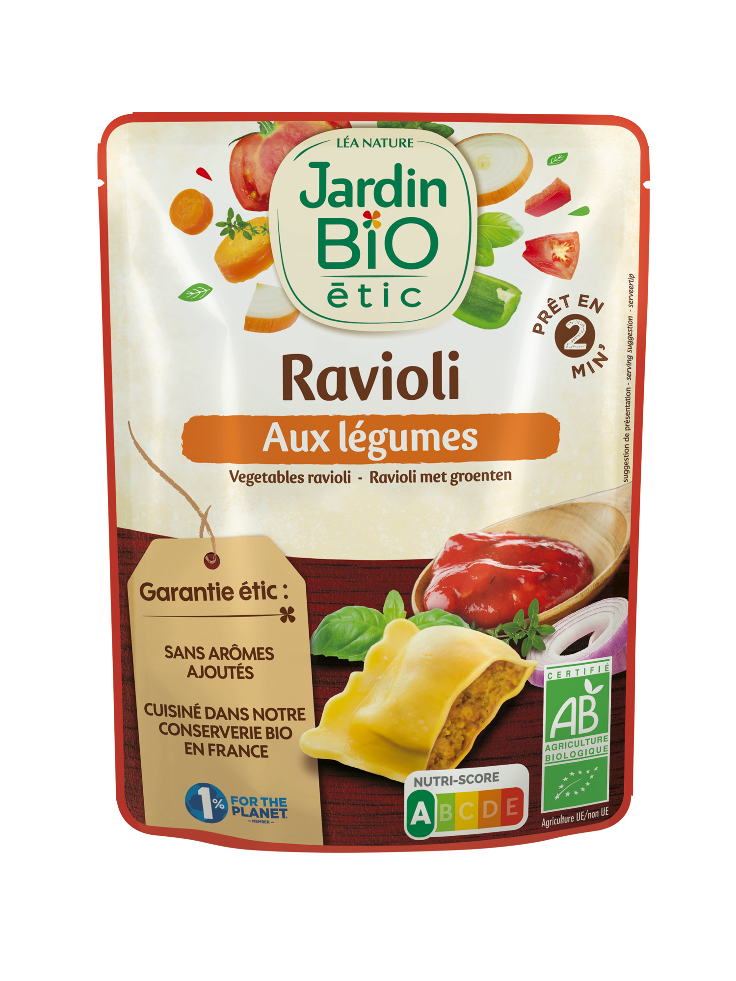 Jardin BiO étic propose une gamme de raviolis cuisinés en France, pensés pour celles et ceux qui veulent manger chaud, vite et bien. À réchauffer en deux minutes, ces recettes mêlent praticité et exigence.