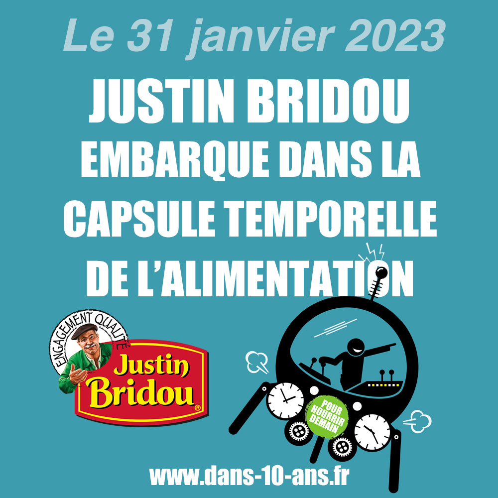 Le 31 janvier 2023, Justin Bridou va embarquer dans la capsule temporelle de l’alimentation afin de promouvoir auprès des médias et des consommateurs sa vision de l’alimentation et de l’agro-alimentaire dans 10 ans.