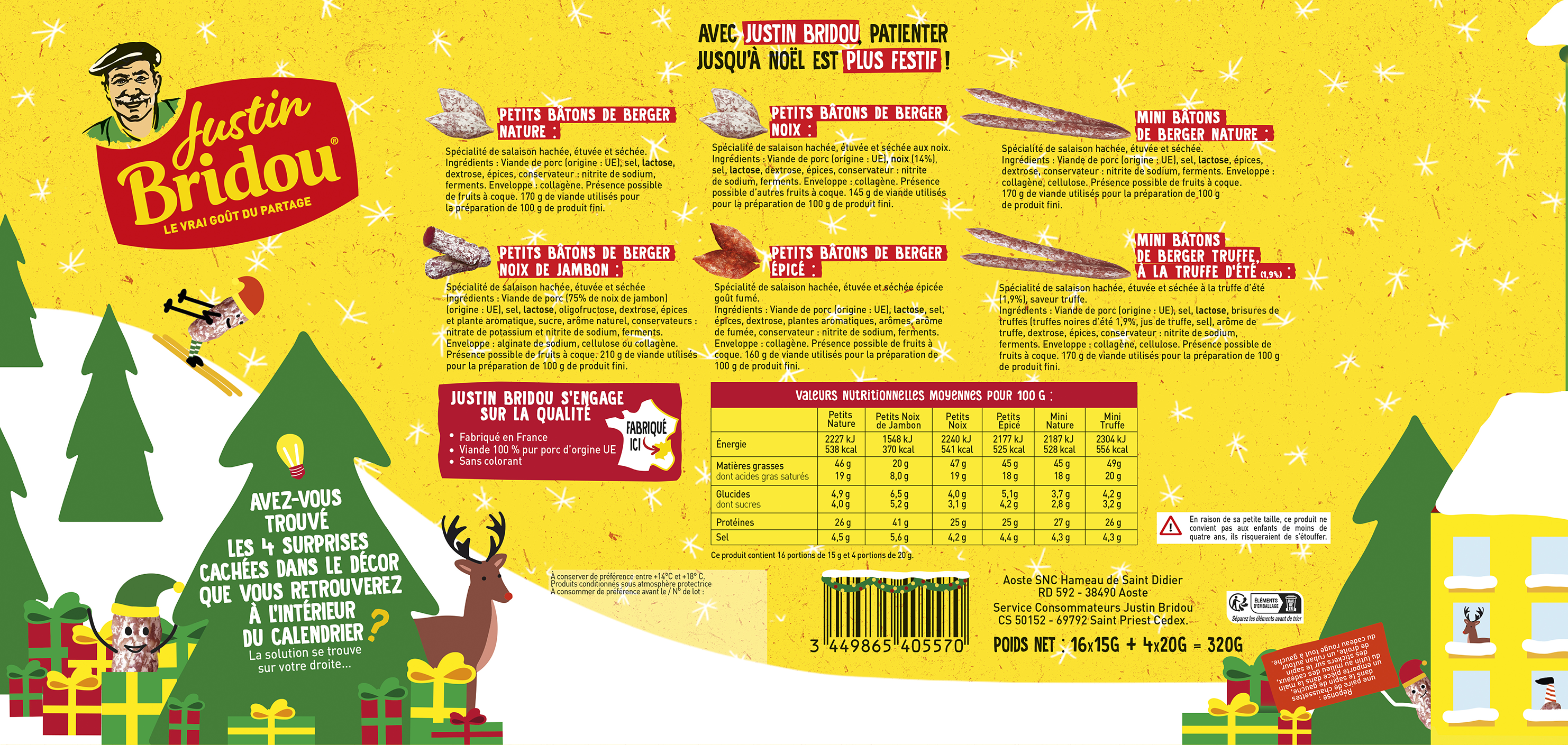 Cette année, Justin Bridou revisite la tradition du calendrier de l’Avent avec une version dédiée aux amateurs de saucisson.