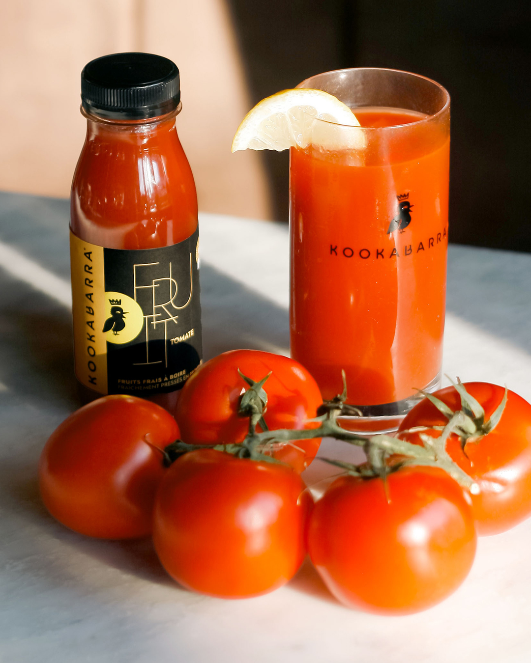 Habitué des jus de fruits frais, Kookabarra explore un nouveau terrain avec son premier jus de tomate.
