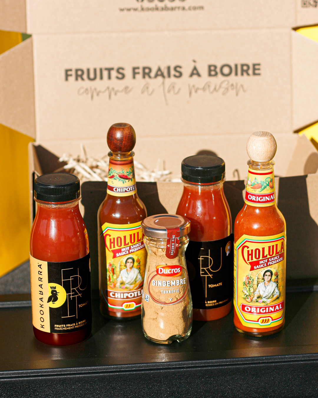 Pour marquer cette nouveauté, un coffret en édition limitée a été conçu avec le groupe McCormick, associant le jus à du gingembre Ducros et aux sauces pimentées Cholula. L’idée : relever les saveurs et offrir une version épicée du traditionnel jus de tomate.