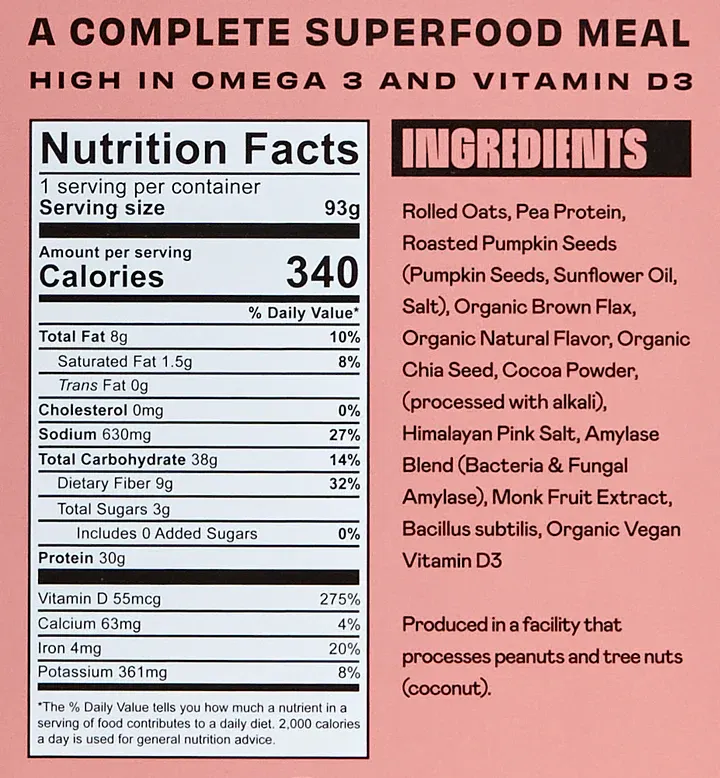 Le produit phare de la marque, Meal One, réunit des ingrédients fonctionnels pour un petit-déjeuner complet et nutritif :