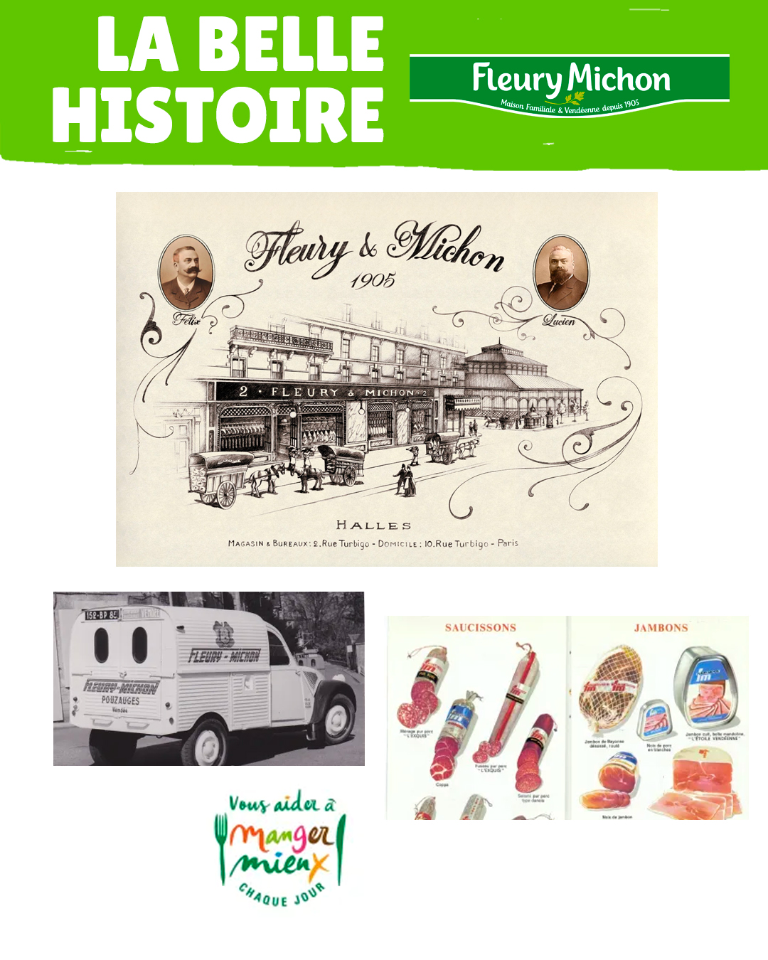 Tout commence en Vendée, à Pouzauges, lorsque Félix Fleury et Lucien Michon, deux artisans charcutiers passionnés, fondent leur entreprise. Leur ambition : proposer des produits de charcuterie de qualité, inspirés du savoir-faire traditionnel vendéen.