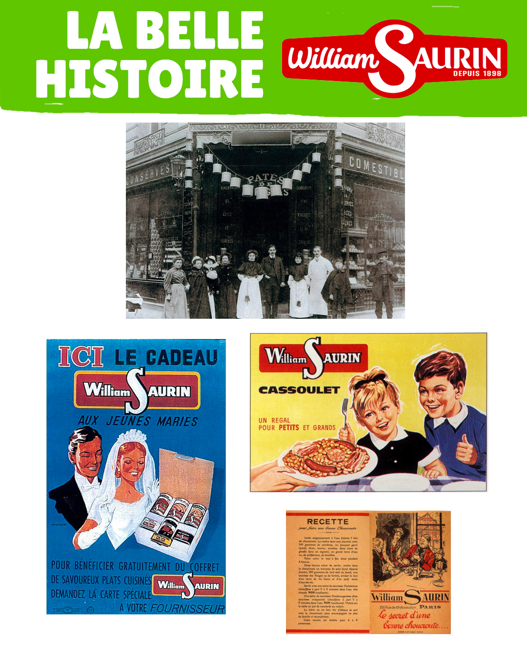 En 1898, William Saurin, âgé de 26 ans, épouse Marie, la nièce d’un traiteur réputé de Metz, Emile Moitrier. Marie et William Saurin prennent la direction d’une prestigieuse épicerie familiale située à Saint Mandé, dans le Val de Marne.