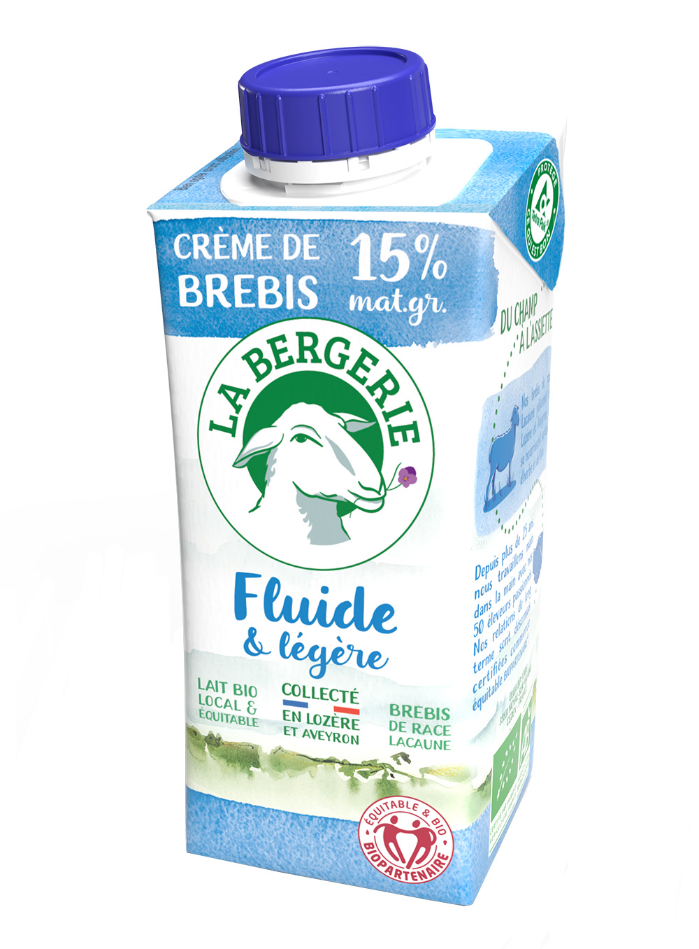 Pour varier les plaisirs en cuisine, La Bergerie innove avec la première crème de brebis UHT, à conserver à température ambiante. Douce et onctueuse, cette crème fluide et légère contient seulement 15 % de matières grasses. Avec sa texture nappante et son goût délicatement parfumé, elle s’adapte à toutes les recettes, salées comme sucrées !