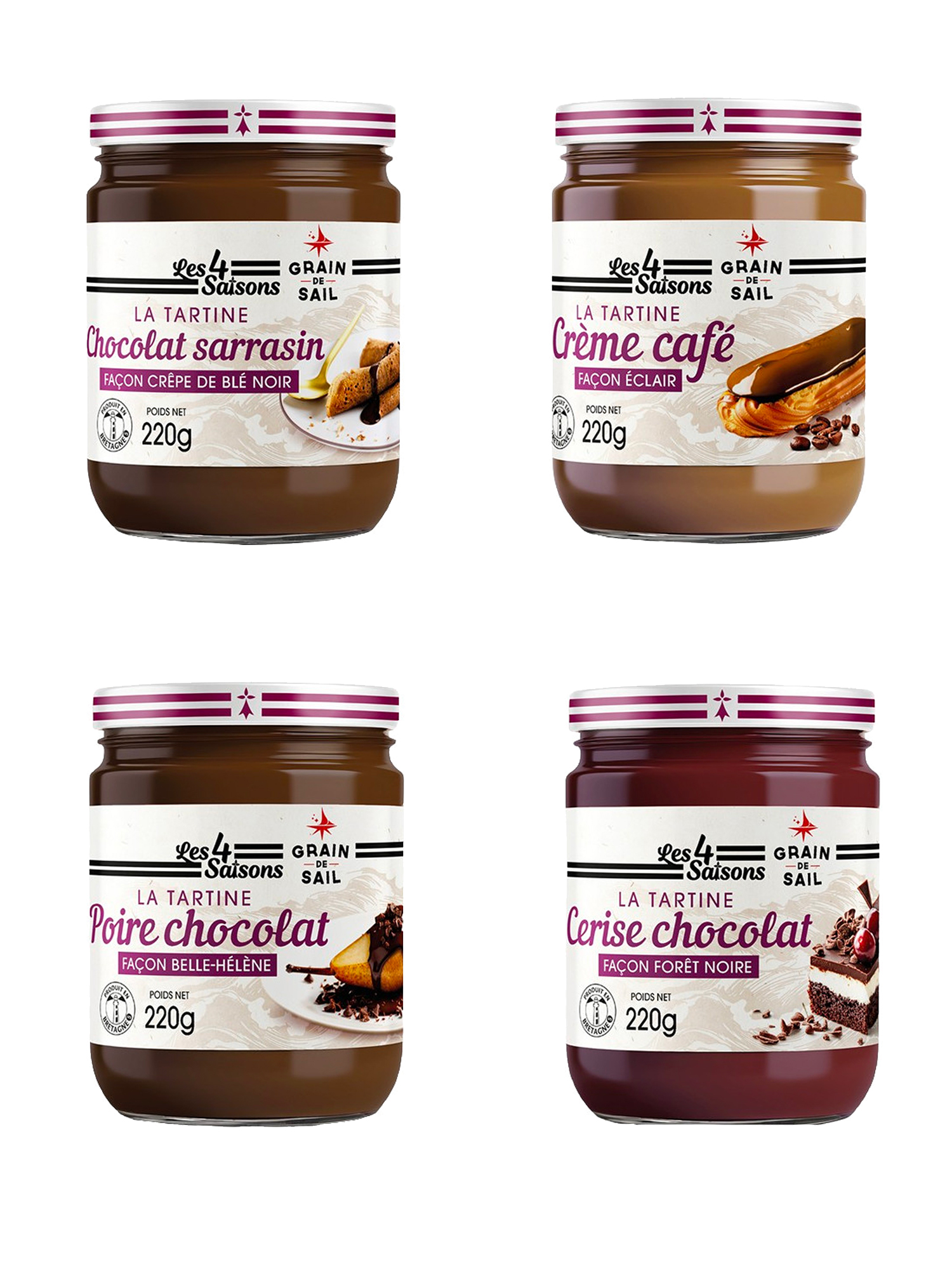 Grain de Sail transpose les grands classiques sucrés en pâtes à tartiner, en s’appuyant sur son chocolat noir 75 % et des ingrédients sourcés avec soin.