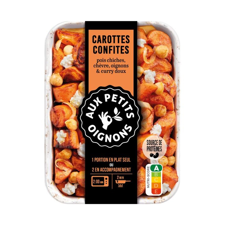 Fini les étiquettes interminables ! « Aux petits oignons » se targue d’offrir des produits sans arômes, colorants ou conservateurs, avec des Nutriscore A/B en bonus.