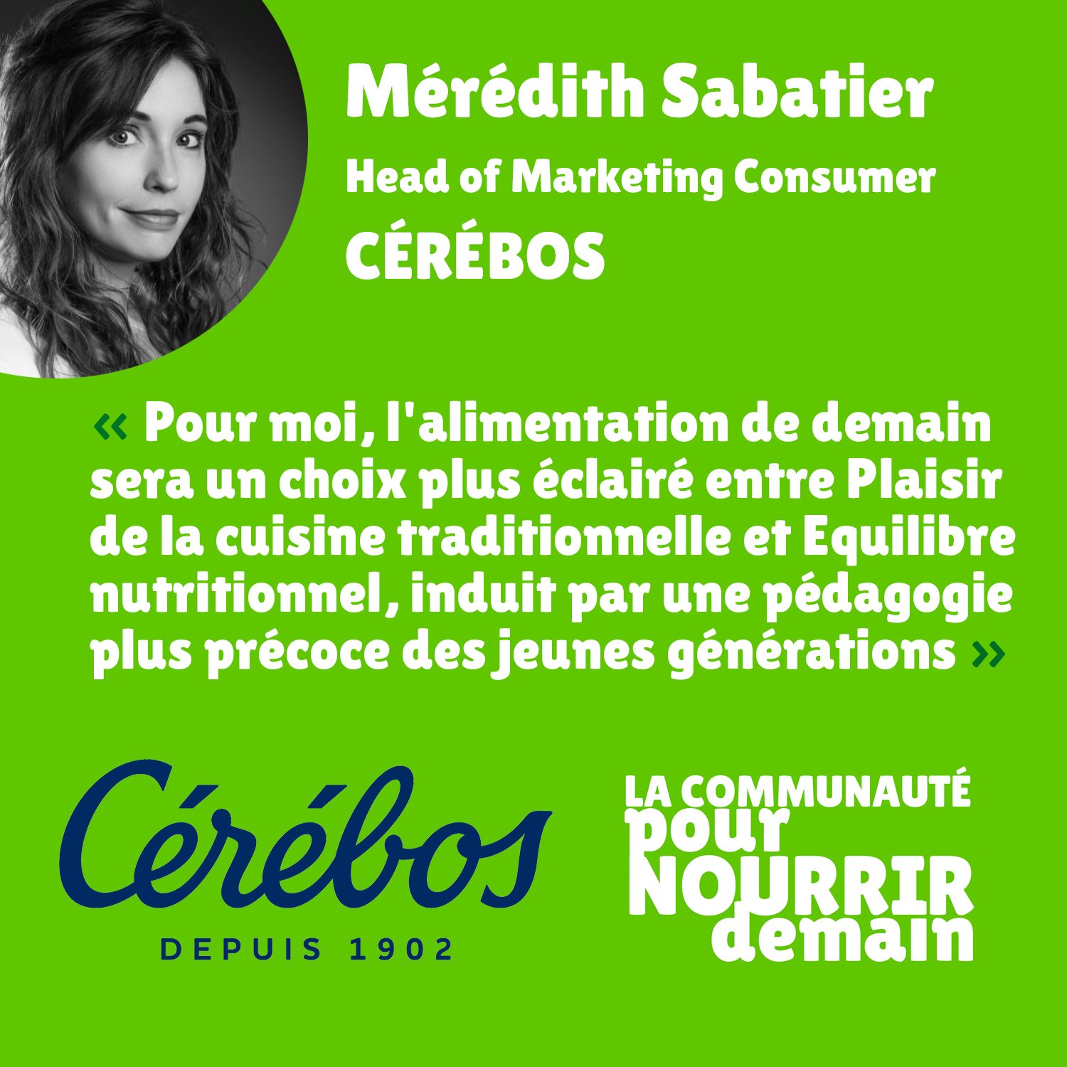« Pour moi, l’alimentation de demain sera un choix plus éclairé entre Plaisir de la cuisine traditionnelle et Equilibre nutritionnel, induit par une pédagogie plus précoce des jeunes générations » Mérédith Sabatier, Head of Marketing Consumer de Cérébos (K+S Groupe)