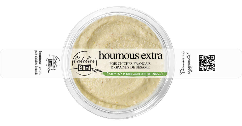 Depuis février, l’atelier Blini a décidé de reverser 1% de ses bénéfices issus des ventes de leurs houmous et falafels à l’association UN PACTE POSITIF™, pour soutenir les agriculteurs partenaires de la filière pois-chiche.