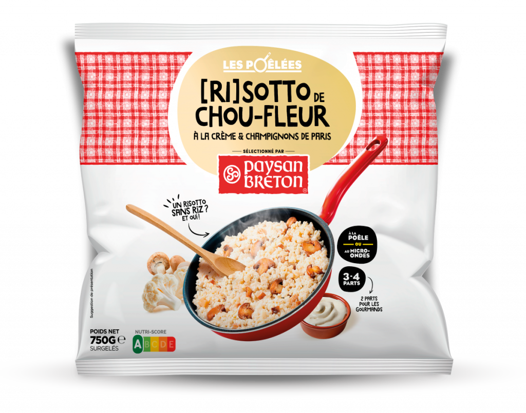 Un risotto sans riz ? et oui ! La marque Paysan Breton Les surgelés lance en ce mois de septembre 2021 une innovation 100% gourmande au rayon surgelés : un risotto de chou-fleur à la crème et aux champignons. Une recette qui fera aimer le chou-fleur… même aux plus réticents !