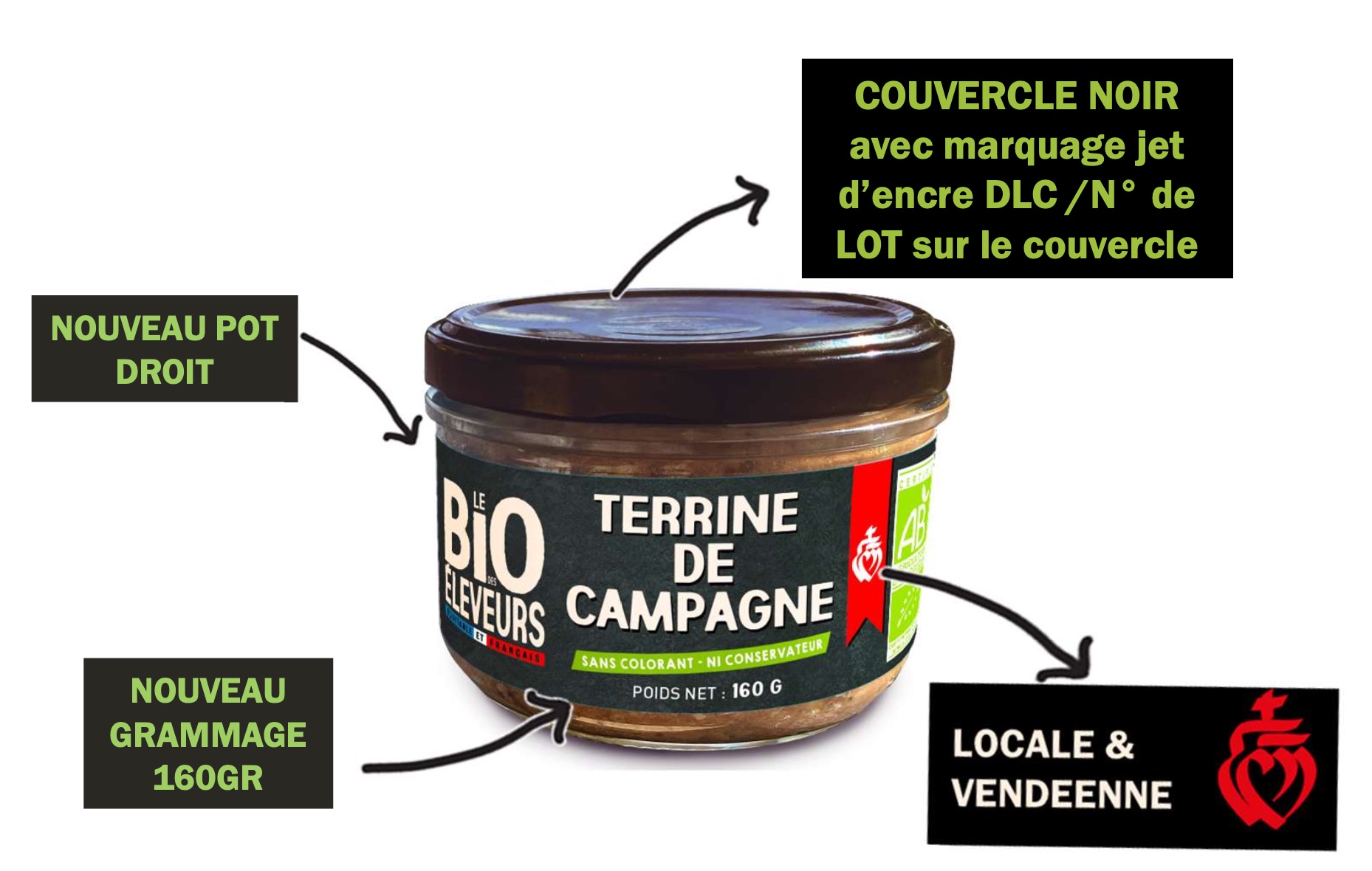 Par la même occasion, la charte graphique évolue avec la mise en avant du double cœur vendéen. Ce double cœur symbolise notre attachement et ancrage à la Vendée. Des recettes élaborées à partir des viandes des porcs de notre filière Porc Bio Atlantique. D’ailleurs, ces conserves sont estampillées du Logo Agri-éthique qui valorise une juste rémunération de nos éleveurs.