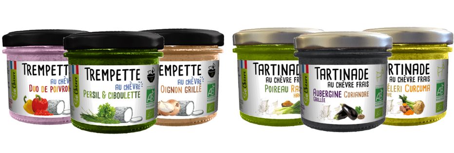 Trois trempettes, des « sauces dip » au fromage de chèvre affiné, et trois tartinades inédites au chèvre frais sont proposées dans les magasins bio et les commerces de proximité à partir d’avril.