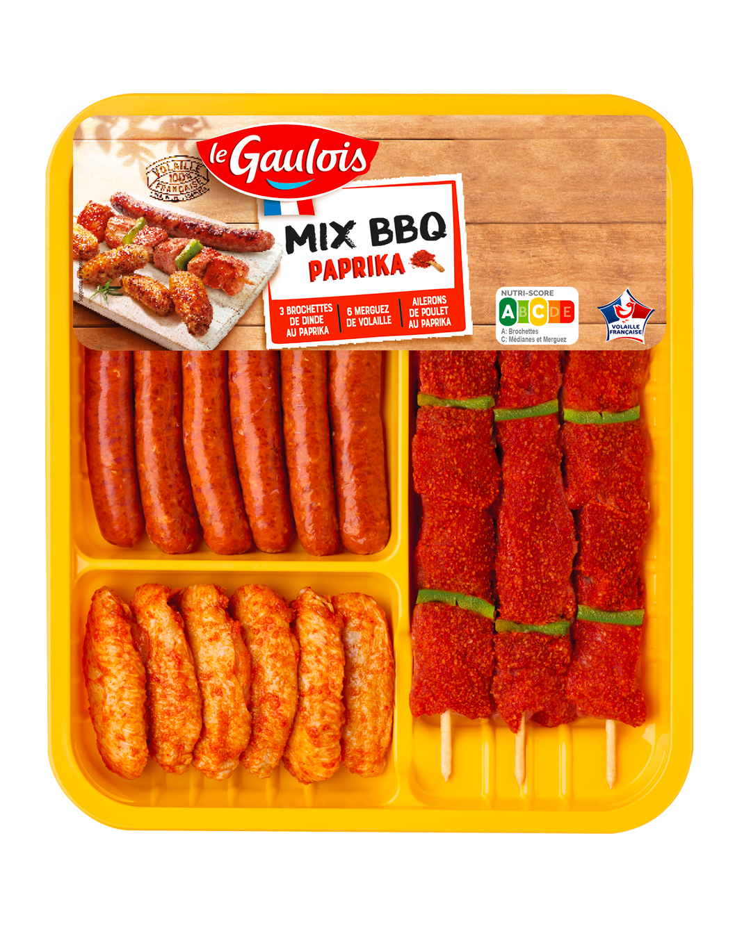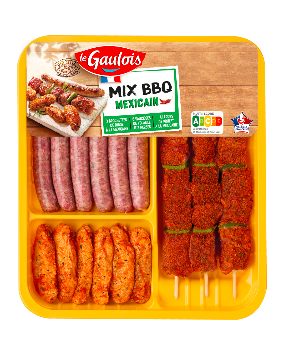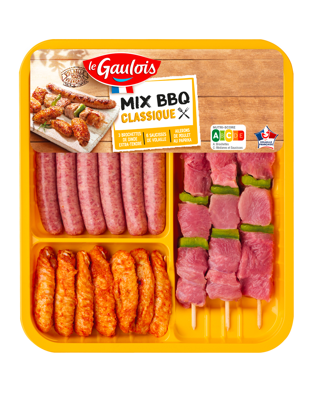 Présentés en barquette compartimentée, ils associent saucisses, ailerons et brochettes afin de varier les textures et les usages sans multiplier les achats.