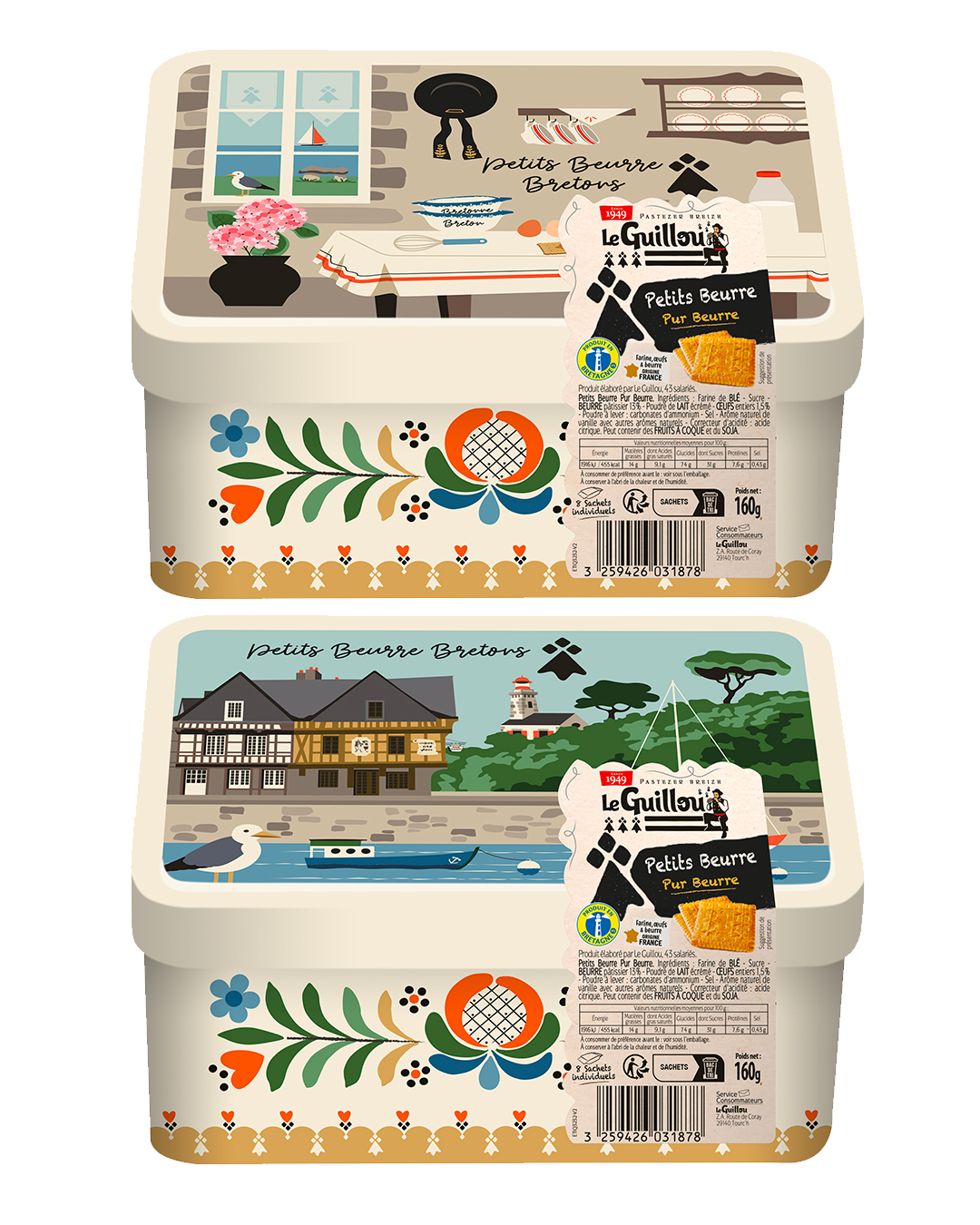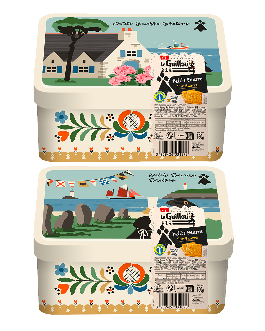 Le Guillou propose une parenthèse bretonne avec ses boîtes de Petits Beurre habillées pour l’occasion de visuels signés Les Petits Yéyés.