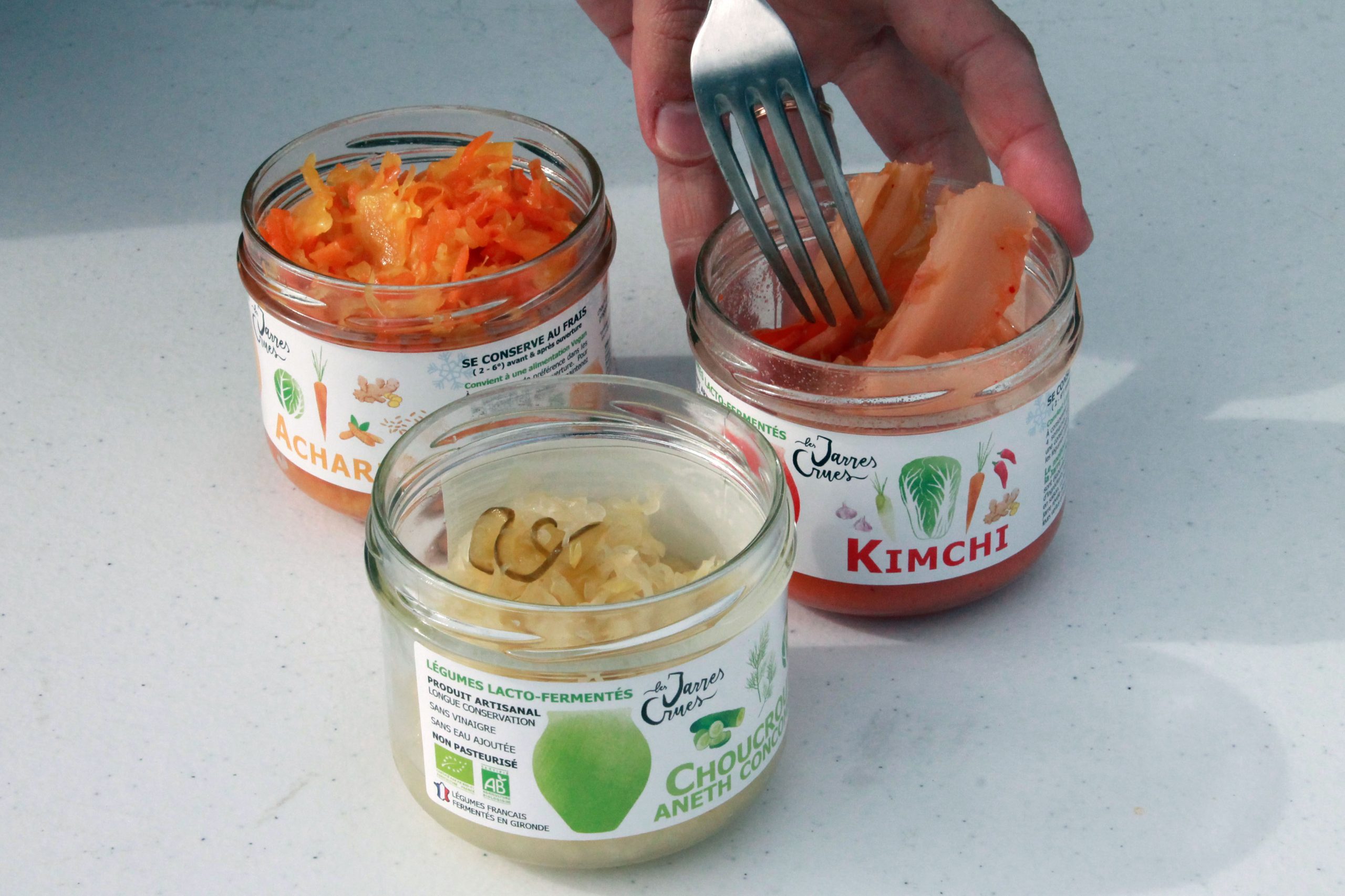 La marque bordelaise, Les Jarres Crues, fondée en 2018 par Julie Maenhout sélectionne des légumes bio et français pour réaliser des légumes naturellement fermentés. Les recettes sont audacieuses et délicieuses.
