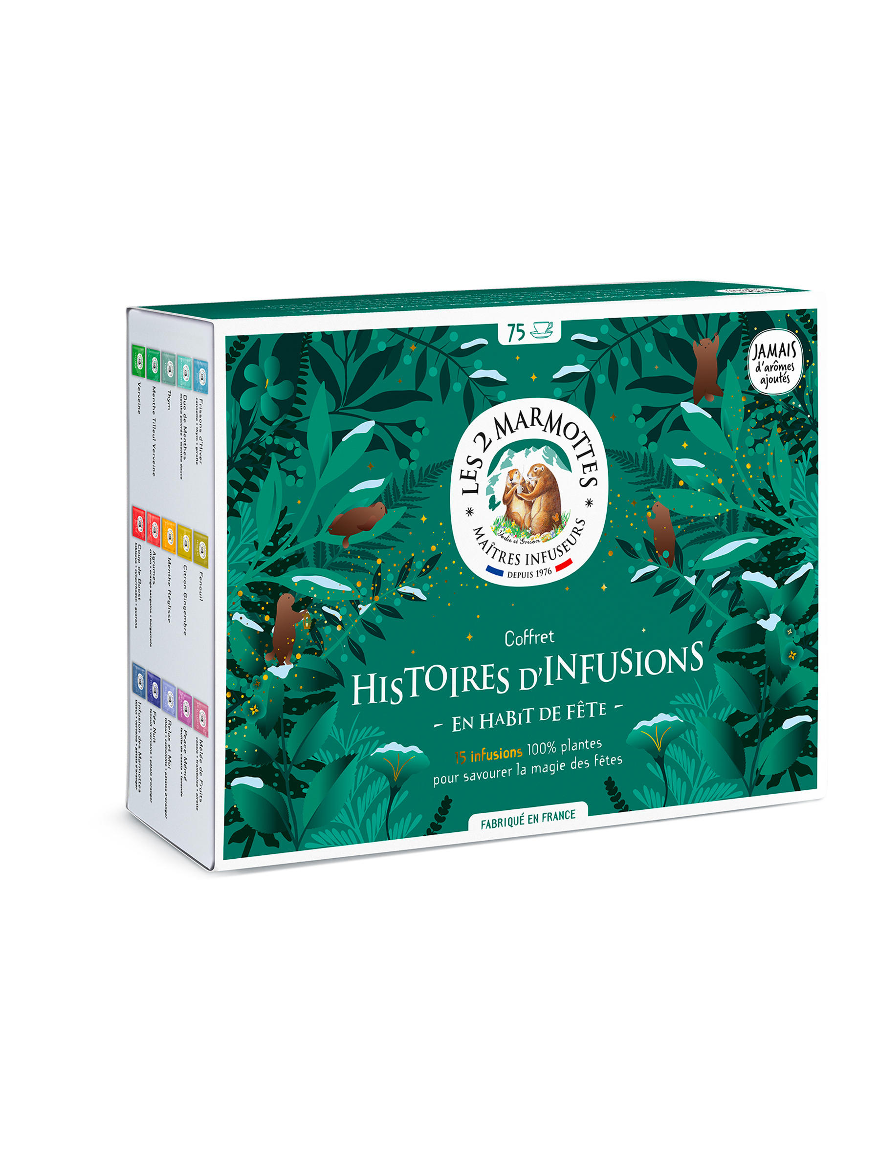 Au menu : le coffret « découverte en habit de fête » réunit 75 sachets, mêlant 12 infusions et 3 thés bio, sélectionnés parmi les plus appréciés de la marque.