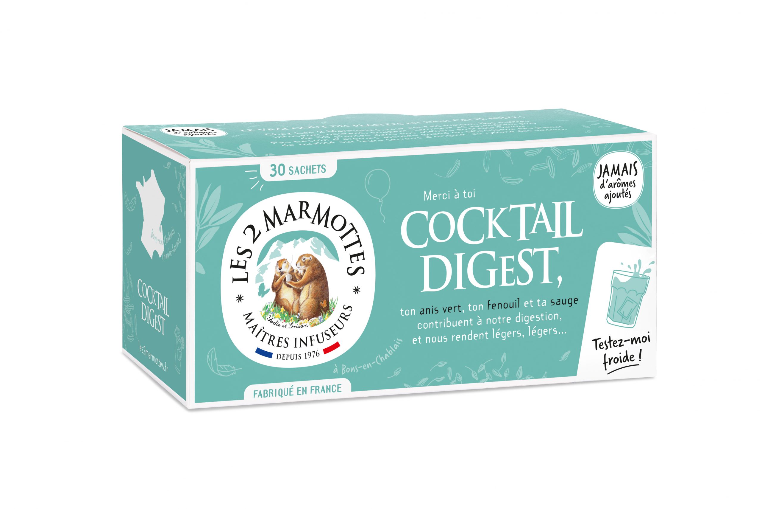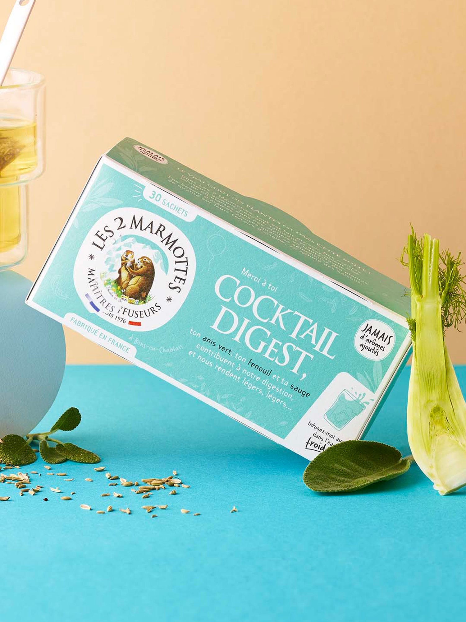 Plutôt que de sortir la bouteille de Limoncello ou de Calvados après un repas copieux, Les 2 Marmottes proposent une option bien plus douce : une infusion 100% plantes pensée pour accompagner la digestion.