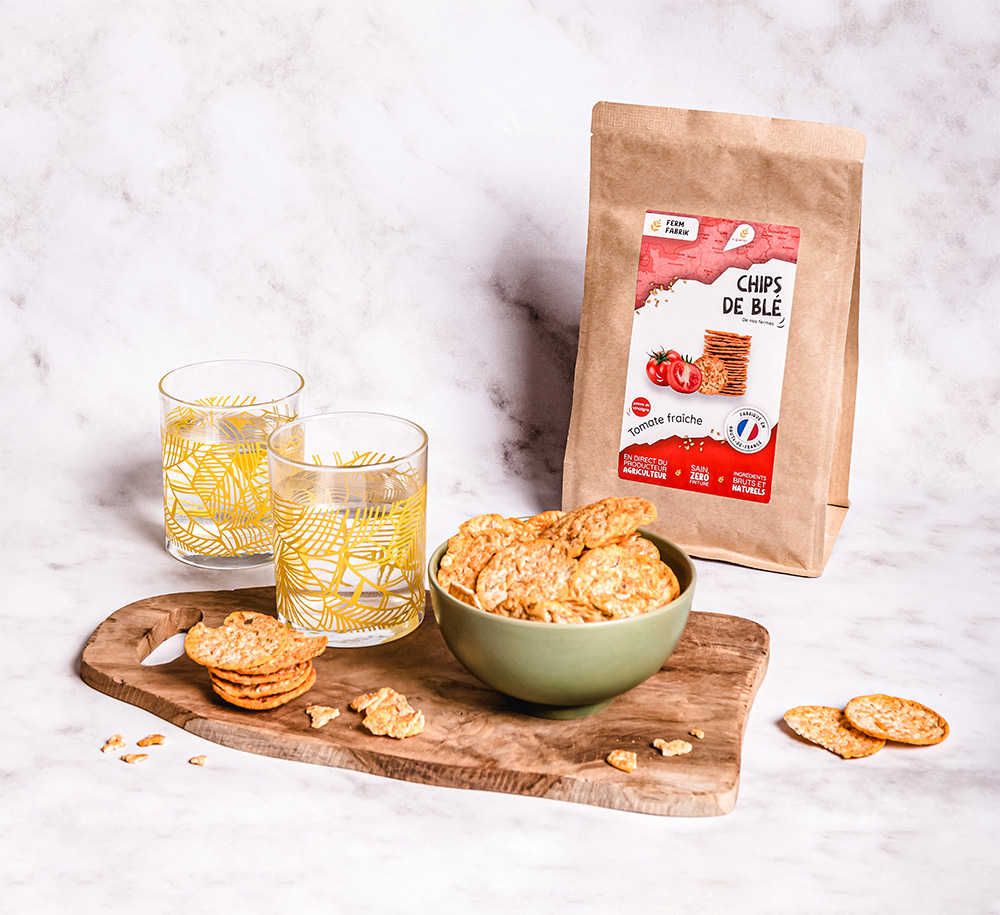 Ces chips au blé croustillantes et épicées aux saveurs originales : betterave rouge et oignon, sel fumé des 2 caps, piment doux fumé, tomate fraîche sont réalisées sans friture (et ainsi avec moins de matière grasse) et à base d’ingrédients bruts et naturels en direct du producteur. Un snacking sain et local !