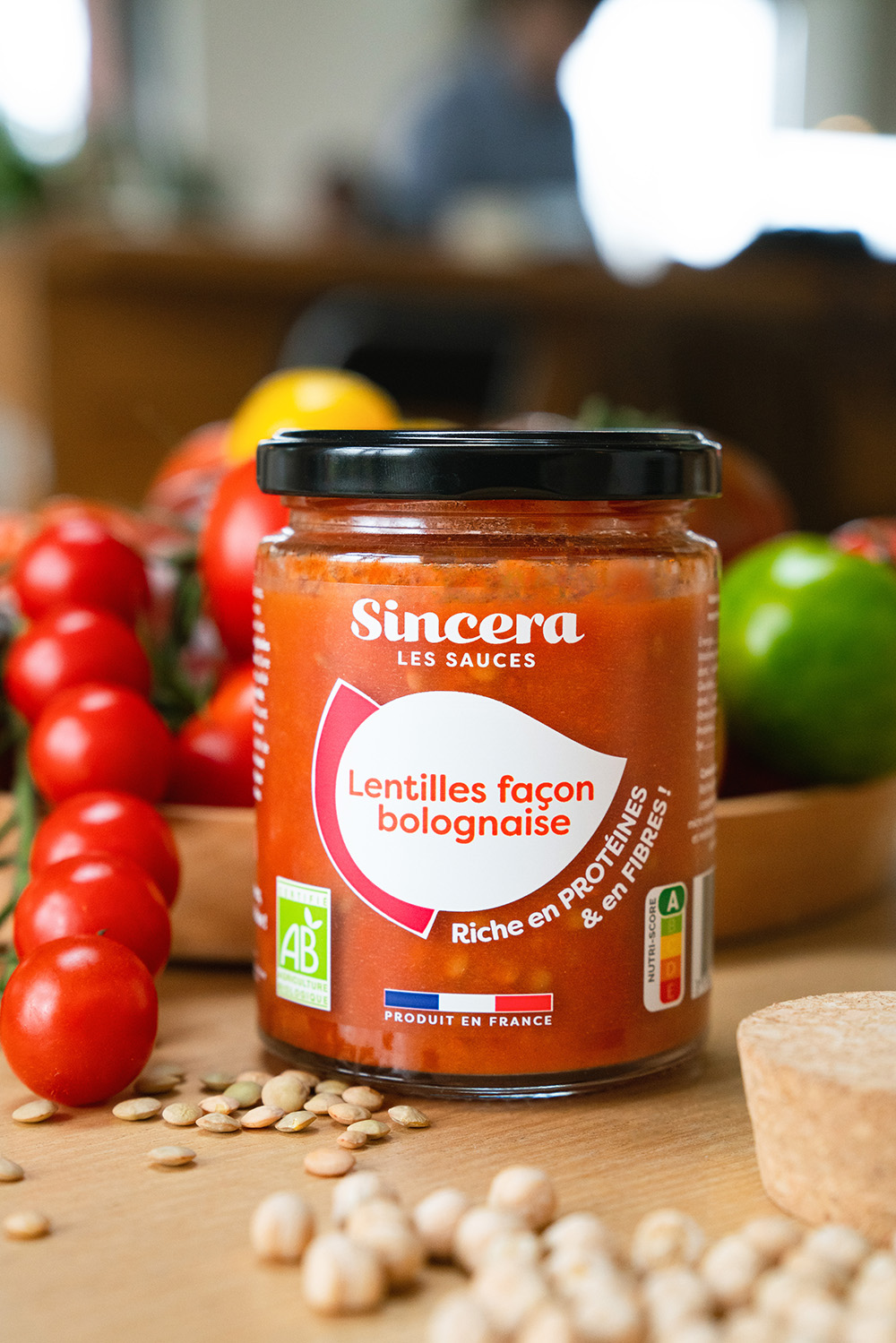 Voici une alternative végétale à la sauce bolognaise à la fois pratique et savoureuse ! La viande est remplacée par une source de protéines végétales : des lentilles blondes ! Elle est préparée uniquement à base d’ingrédients naturels, des lentilles et des tomates issues de filières bio françaises, cuisinées et fabriquées en France.