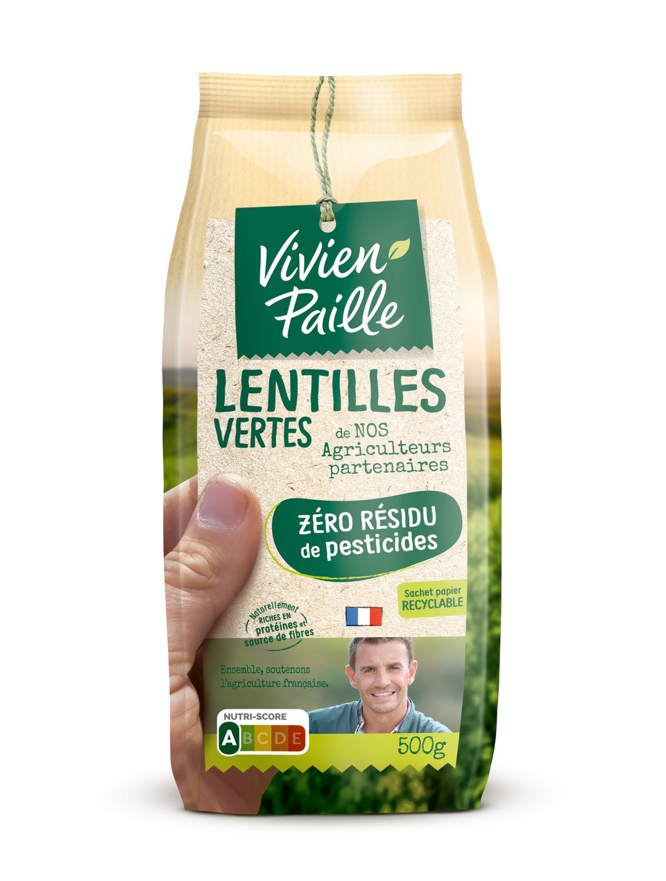 Paille dévoile ainsi la première lentille verte zéro résidu de pesticides, issus de ses agriculteurs partenaires, dans un sachet en papier recyclable.
