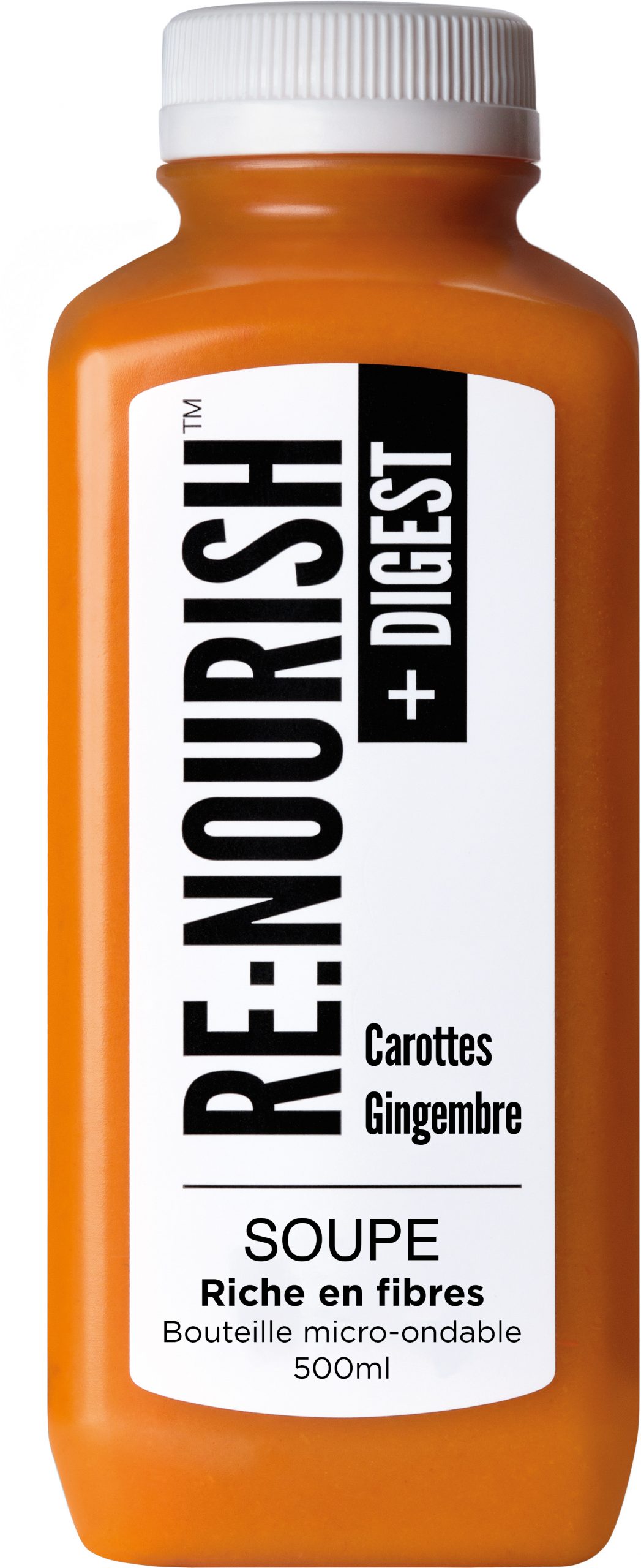 Finies les pauses déjeuner insipides ou aux plats trop gras entre deux trains ou rendez-vous ! Les soupes Re:Nourish débarquent en France pour le plus grand plaisir de tous les gourmands aux emplois du temps surchargés. La marque aspire à faciliter la vie de tous grâce à ses bouteilles micro-ondables et recyclables brevetées à l’échelle internationale. Découvrez les trois saveurs de soupes préparées à partir de légumes frais, chez Monoprix, à partir du 1er février 2023. Surprise à la dégustation assurée.