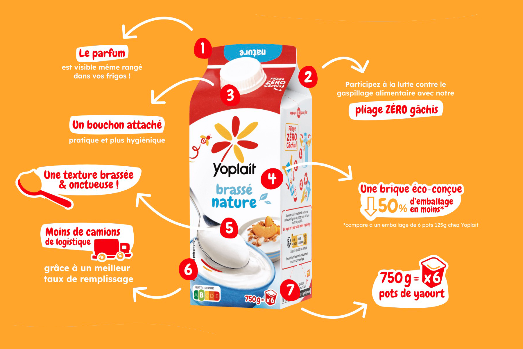 Dans une démarche écoresponsable, la brique est éco-conçue avec 50% d’emballage en moins que les pots de yaourts classiques.