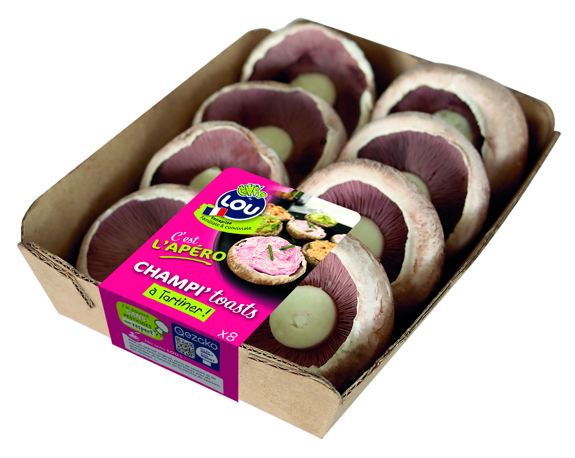 Innovation de la marque LOU, Les champi’toasts sont des champignons cultivés de manière à ce qu’ils s’ouvrent et soient plus faciles à tartiner. Ouverts, leur goût est plus intense.