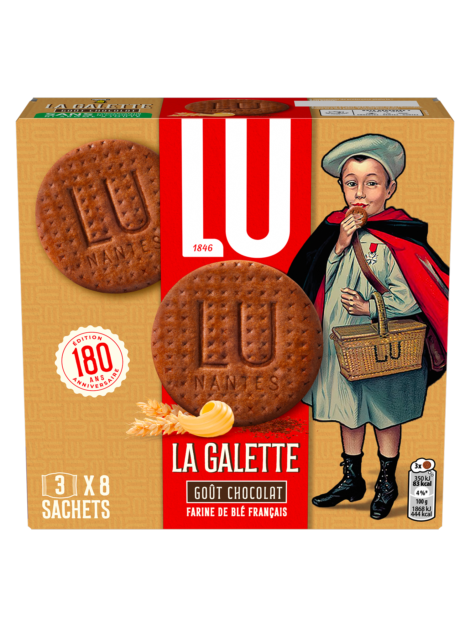 Deux recettes sont proposées : pur beurre ou goût chocolat, le tout en format poche, facile à glisser dans un sac. L’écolier emblématique de Firmin Bouisset orne le packaging, rappelant les figures familières du patrimoine gourmand de LU.
