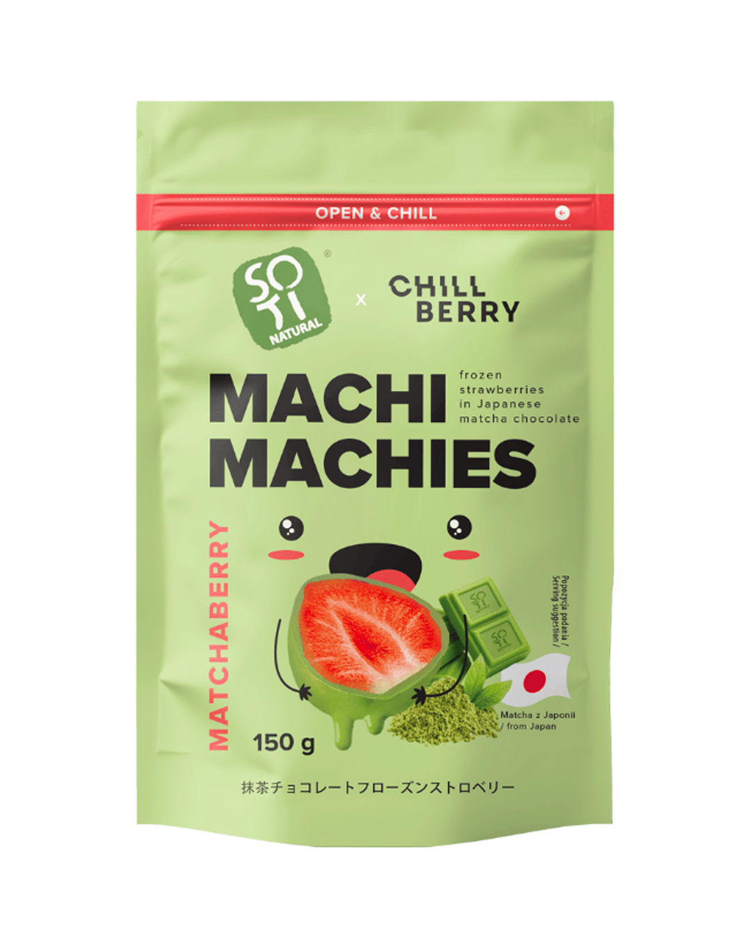 Cette création associe un enrobage au chocolat blanc et une touche de matcha soigneusement sélectionné. Derrière cette proposition se cache un duo : la marque de thés SOTI Natural et Chillberry, spécialiste des fruits glacés.