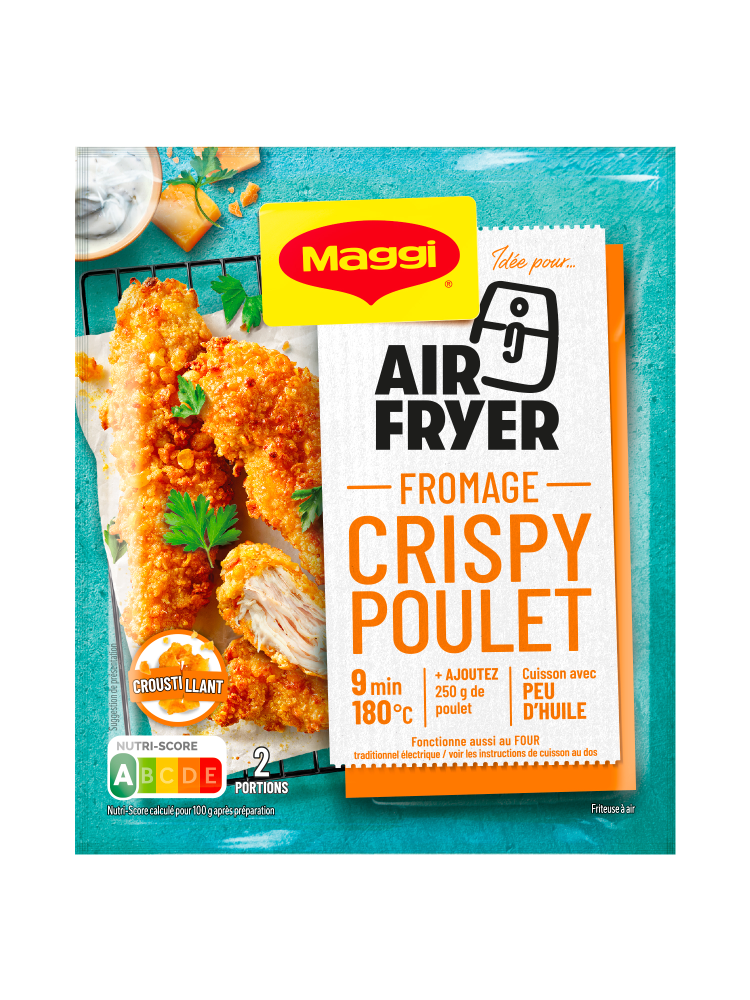 « Fromage crispy poulet » mêle pétales de maïs et arômes intenses pour un résultat doré en 9 minutes.