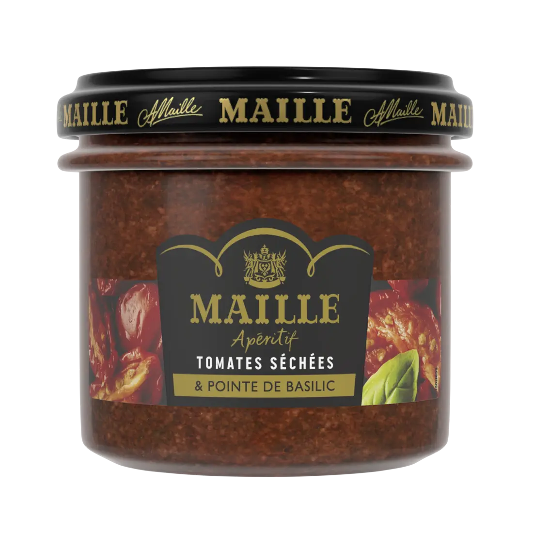 Maille, connue pour son raffinement culinaire, introduit une touche de créativité aux moments conviviaux avec sa spécialité à tartiner Tomates Séchées & Pointe de Basilic.