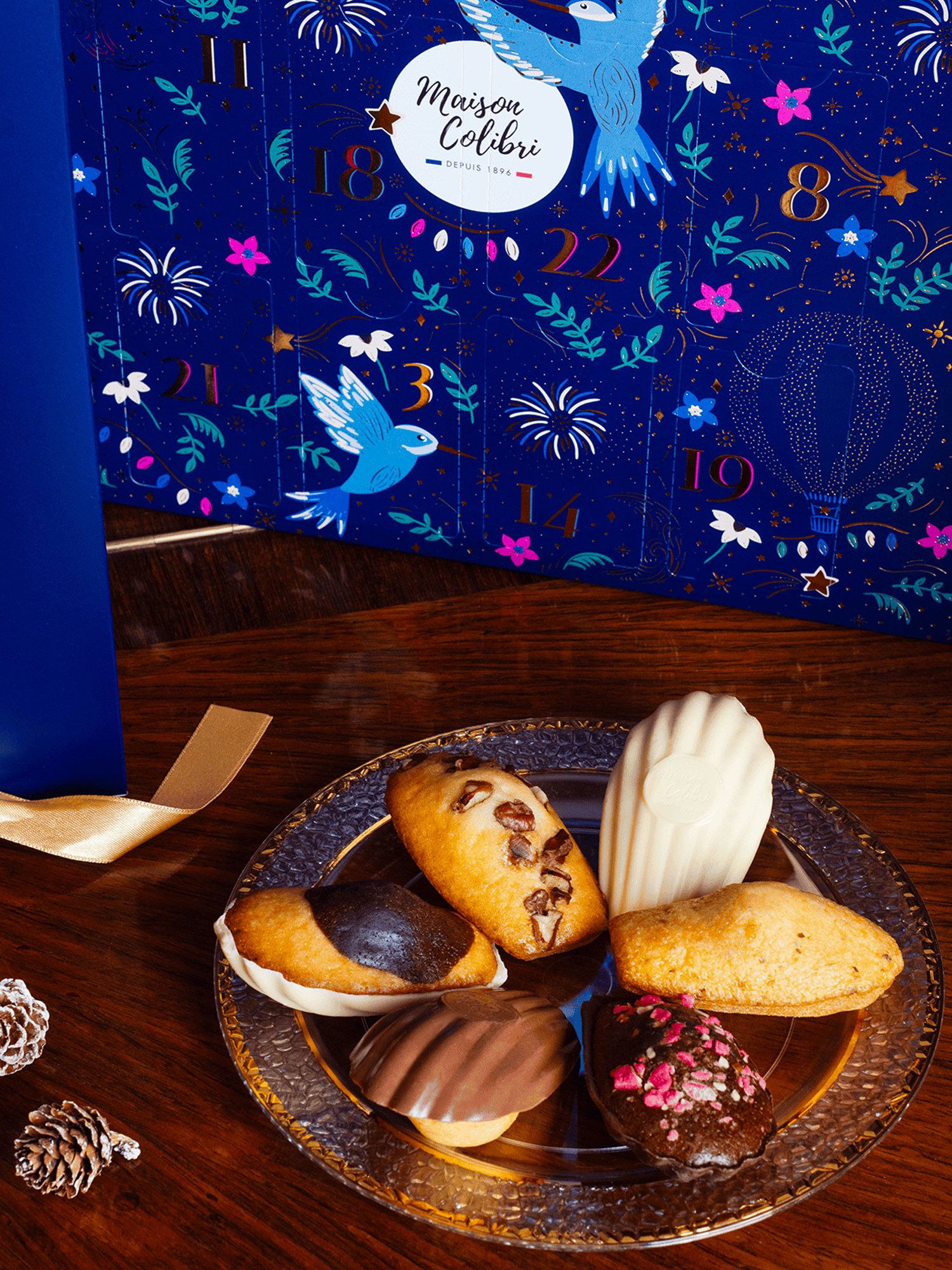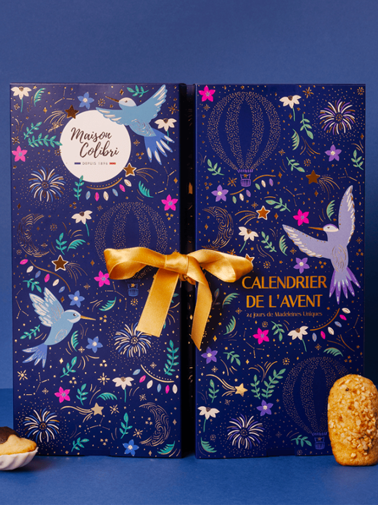 Maison Colibri transforme l’attente de Noël en rituel ultra gourmand avec un calendrier de l’Avent garni de 24 madeleines toutes différentes, présentées en édition limitée.