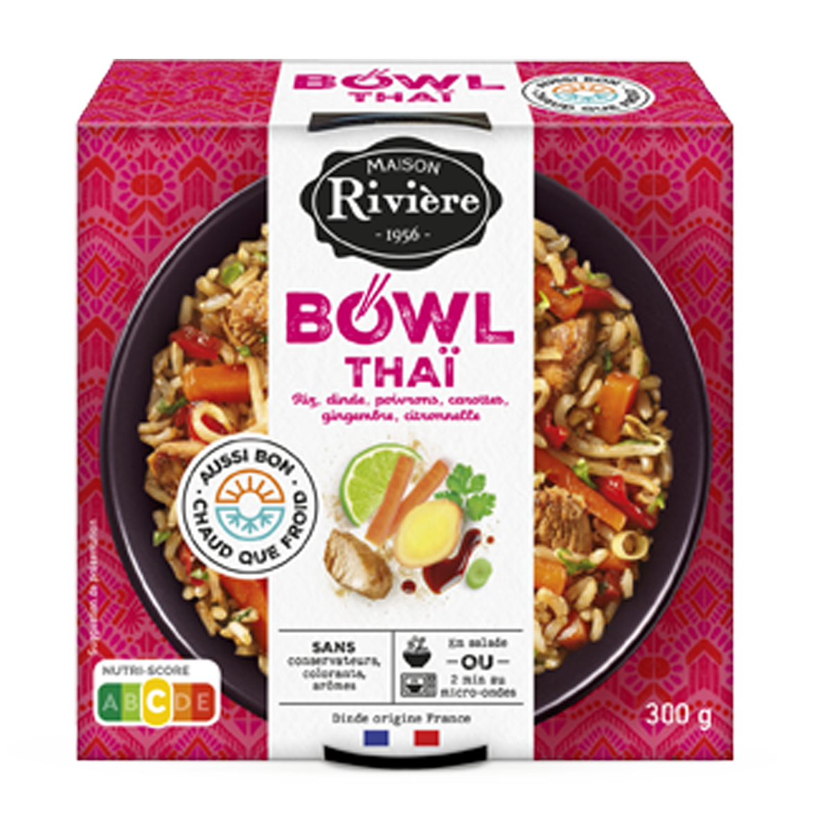 - Le bowl thaï allie riz, dinde, carottes, coriandre et une sauce parfumée au gingembre et citronnelle.