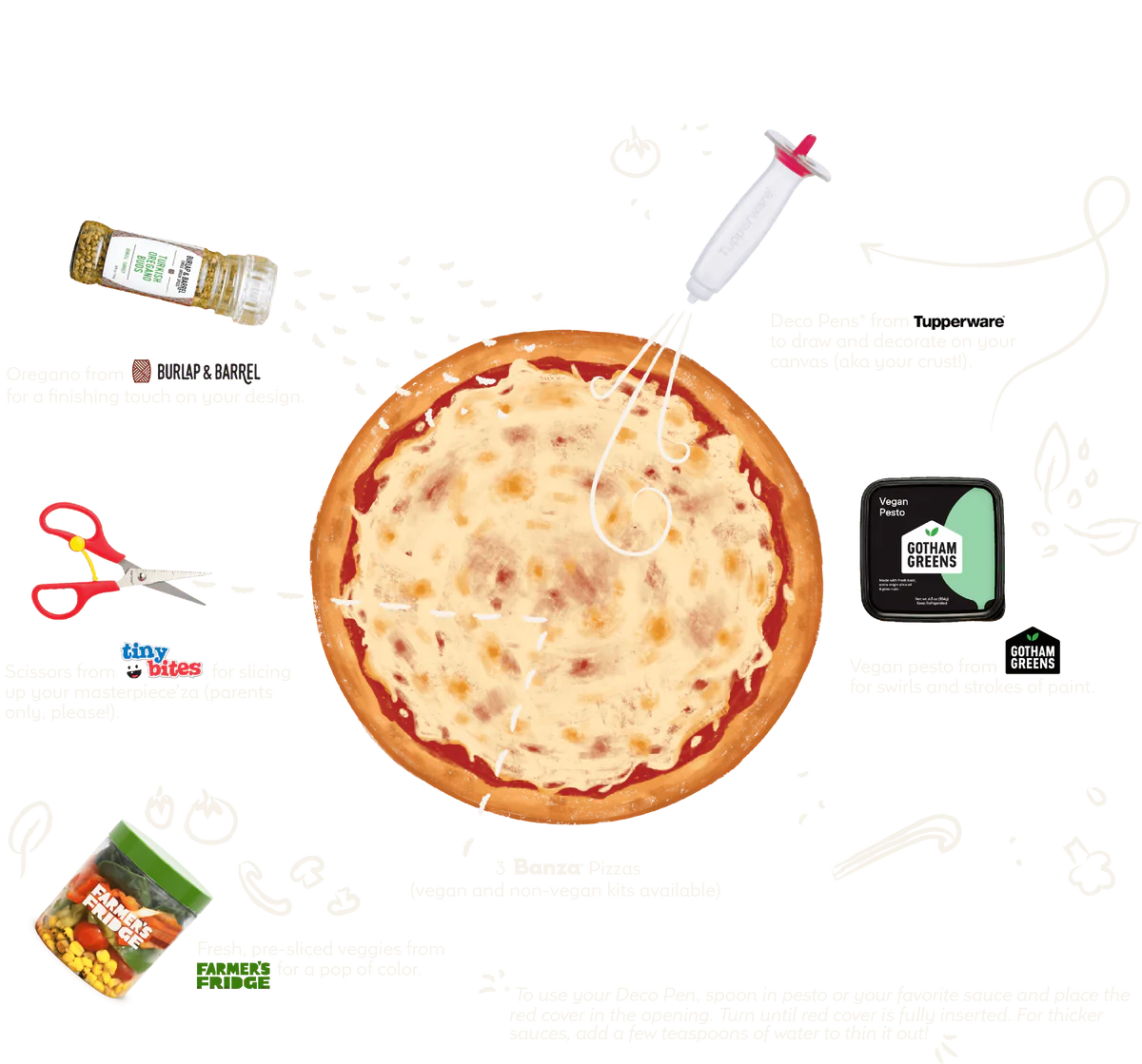• Des stylos déco à remplir de sauce ou de vinaigrette pour dessiner directement sur la pizza
