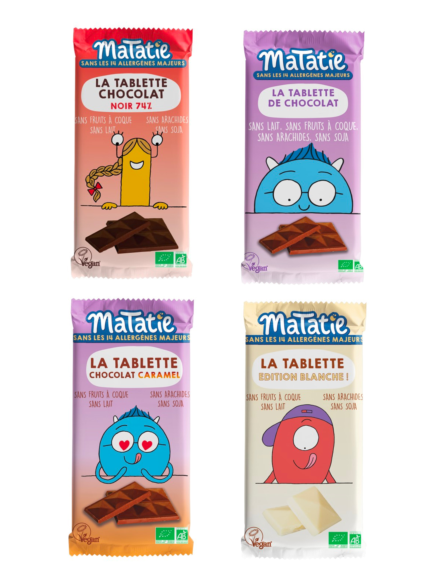 Matatie continue de déployer son offre en proposant quatre références de tablettes de chocolat pensées pour convenir au plus grand nombre.