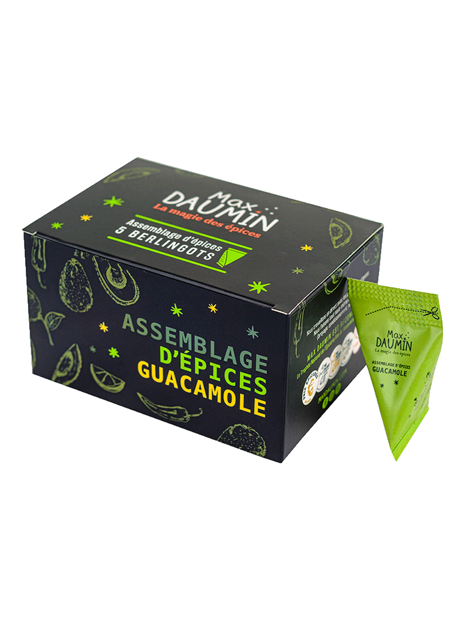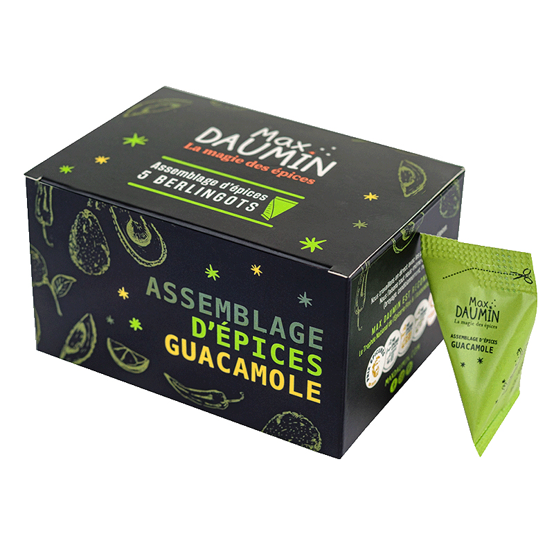 À l’intérieur, cinq berlingots d’un assemblage d’épices conçu pour relever l’avocat sans en masquer la texture.