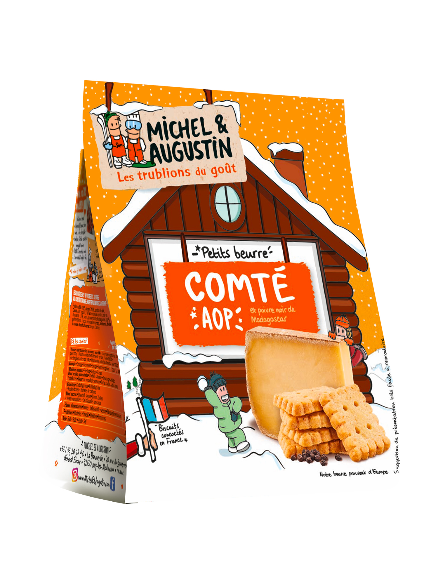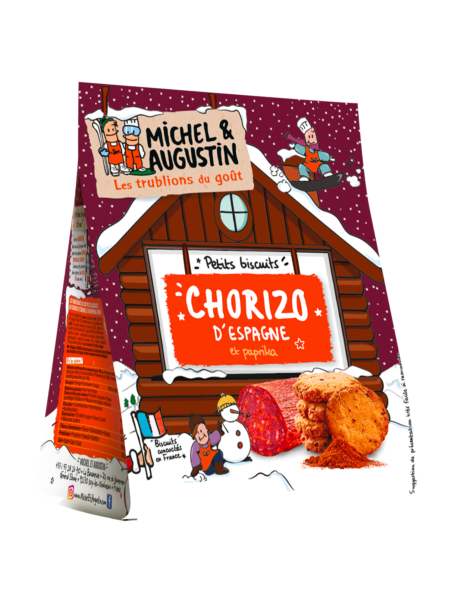 La Raclette de Savoie IGP, le Cantal AOP ou encore le Parmigiano Reggiano se glissent dans des petits sablés, tandis que le Comté AOP s’invite dans un petit beurre salé. Du côté salaison, des biscuits à la coppa et au chorizo d’Espagne complètent la sélection.