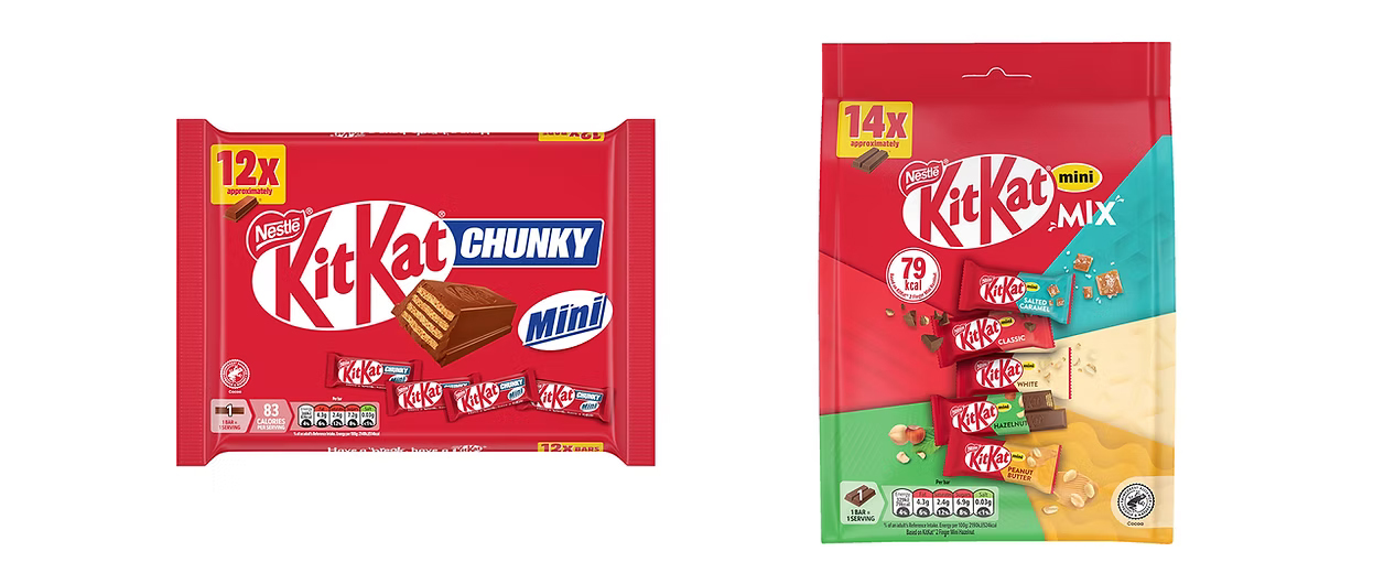 L’enseigne décline deux propositions : les KitKat Chunky Minis, reprenant le goût généreux du format classique en bouchées pratiques, et le KitKat Two Finger Mini Mix, qui rassemble plusieurs saveurs emblématiques dans un seul sachet.