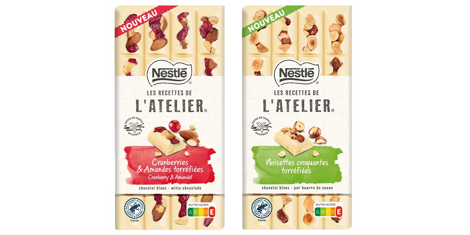 Nestlé, acteur incontournable du marché chocolatier, revisite un classique : le chocolat blanc. La marque dévoile, sous sa gamme Nestlé Les Recettes de l’Atelier, deux nouvelles créations alléchantes : « Noisettes croquantes torréfiées » et « Cranberries & amandes torréfiées ».